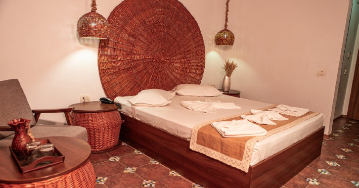 CAMERA DUBLA STANDARD Camerele sunt dispuse in doua corpuri diferite avand un design classic dar mobilate diferit in functie de corp. Camera dubla standard este potrivita pentru cazarea a doua persoane. Dimensiune camera aproximativ 16m2 DORMITOR: Pat dublu mare CAMERA DUBLA SUPERIOR Suprafata generoasa de care dispune camera este o alegere perfecta pentru relaxare si confort. Mobilierul si decorul modern ofera toate aspectele necesare pentru o sedere placuta si de neuitat. Acest tip de camera nu are balcon. Dimensiune camera aproximativ 18 m2 DORMITOR: Pat dublu mare sau twin