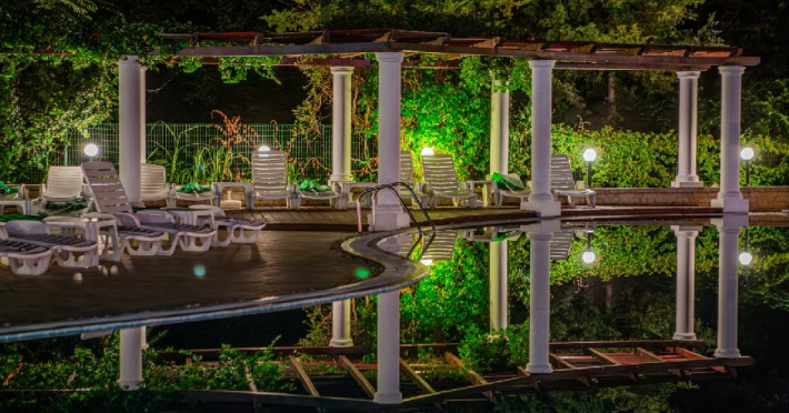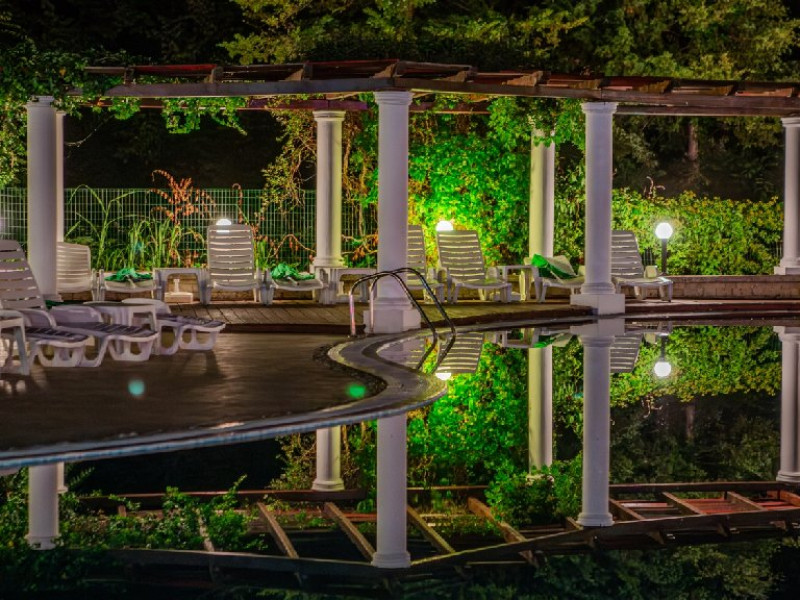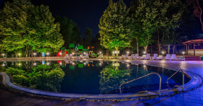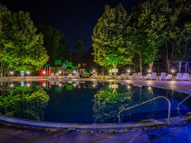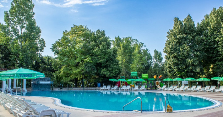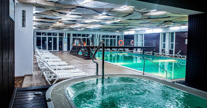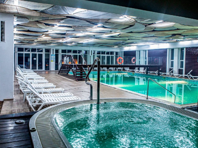 Complexul dispune de o piscina exterioara impresionanta amplasata in zona verde cu o plaja amenajata cu sezlonguri si umbrele, o piscina pentru copii si o piscina interioara de dimensiuni semiolimpice cu apa incalzita, ambele deservite de un bar in care se pot servi bauturi si coktail-uri fine. Accesul pentru adulti si copii la cele doua piscine in aer liber si piscina acoperita este gratuit. Oaspetii beneficiaza de sezlonguri si umbrele in limita disponibilitatii.