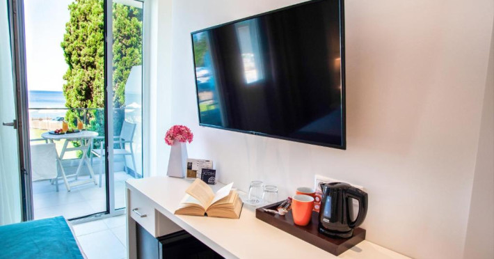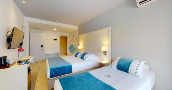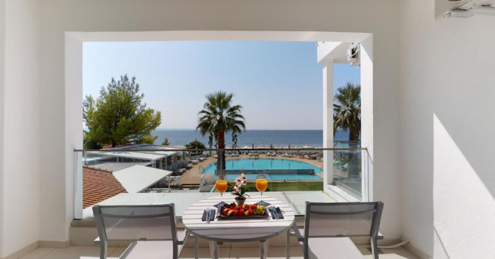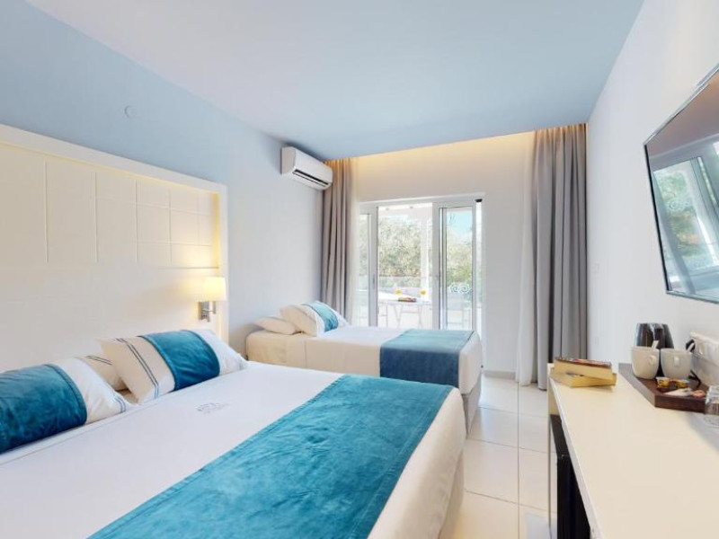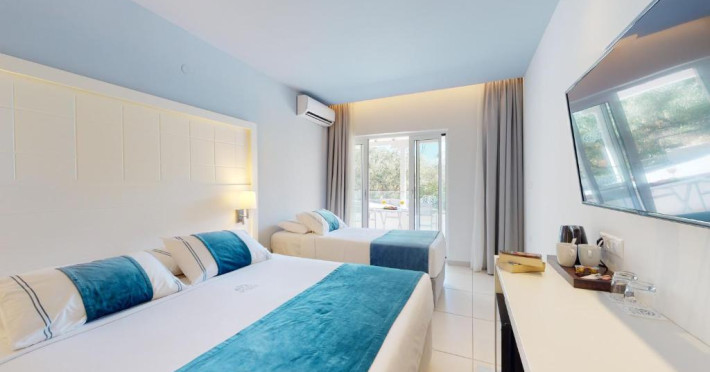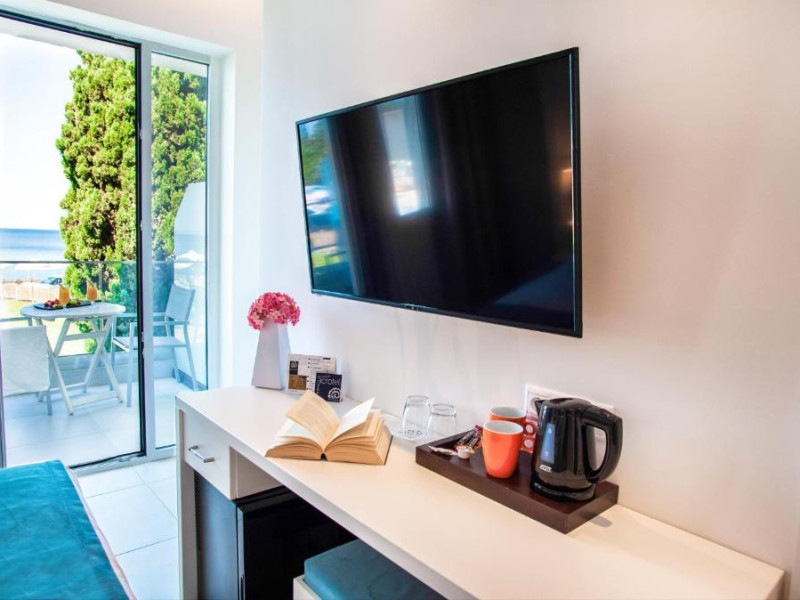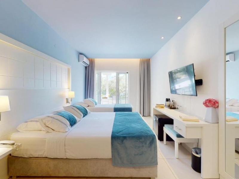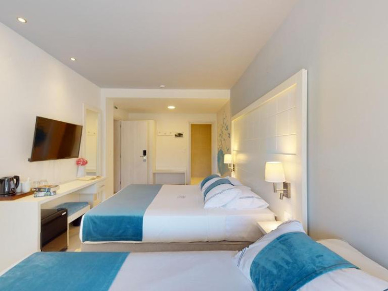 Camerele luminoase și spațioase sunt decorate in nuanțe calde și dispun de balcoane sau terase cu vedere spre mare sau grădină. Facilitățile includ piscină exterioară cu șezlonguri și umbrele, restaurant cu specific mediteranean și bar la piscină.