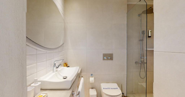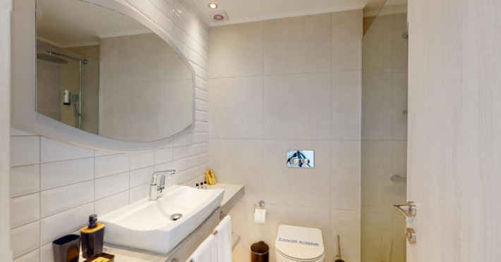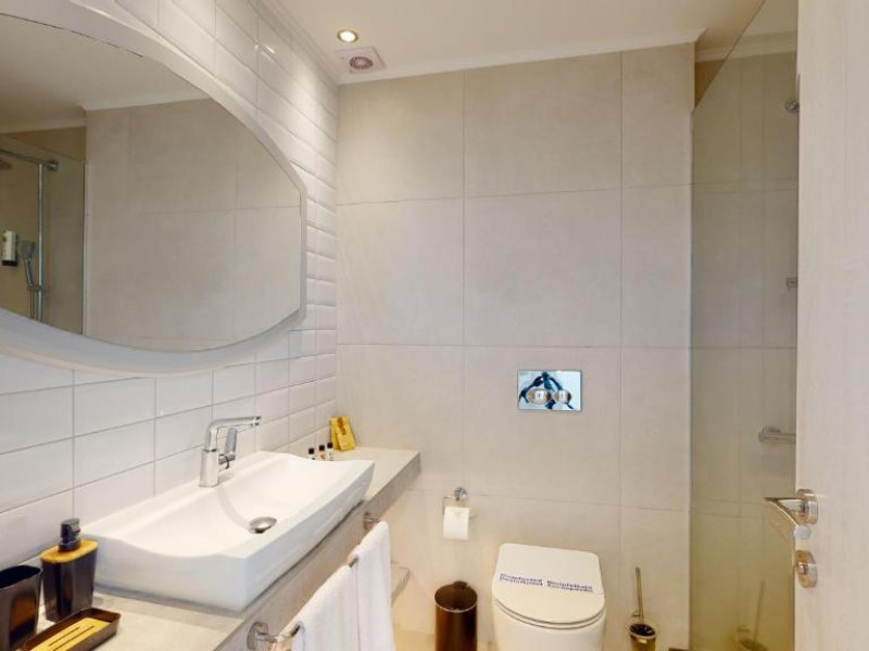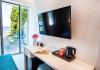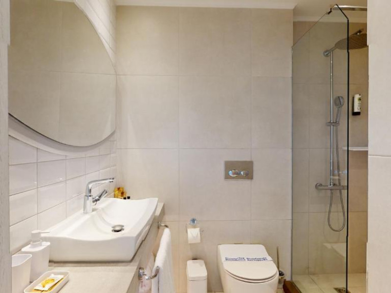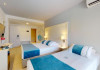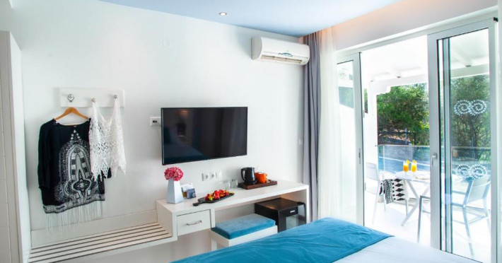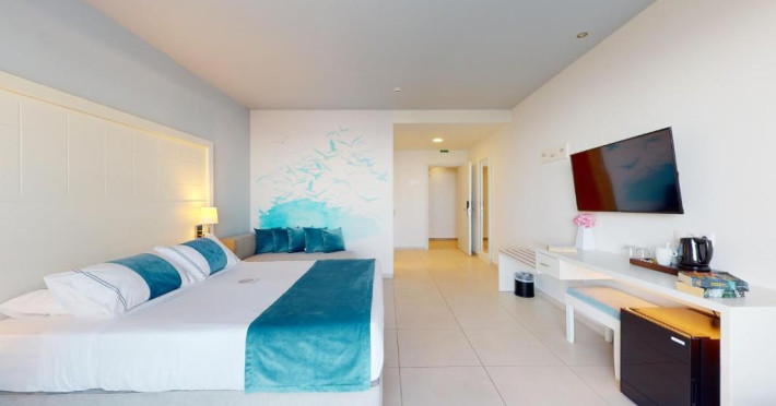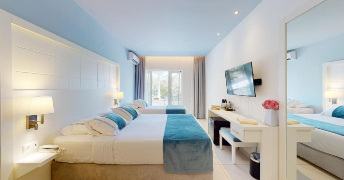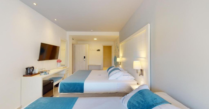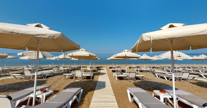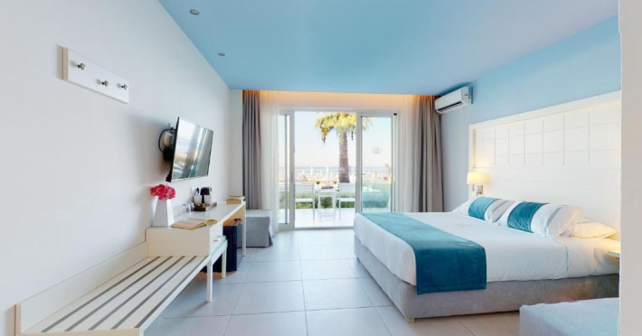 Camerele luminoase și spațioase sunt decorate in nuanțe calde și dispun de balcoane sau terase cu vedere spre mare sau grădină. Facilitățile includ piscină exterioară cu șezlonguri și umbrele, restaurant cu specific mediteranean și bar la piscină.