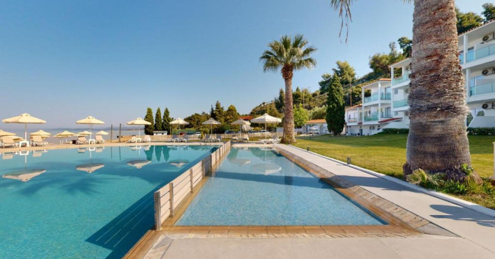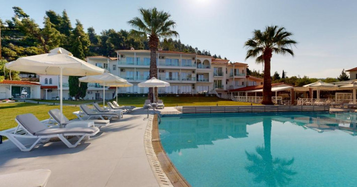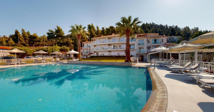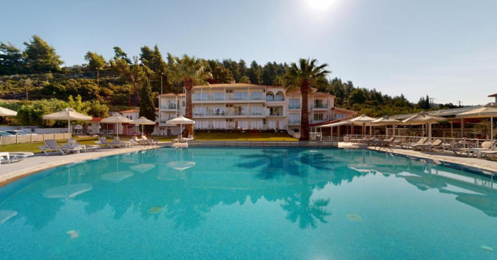 Acrotel Lilyann Boutique Hotel din Akti Elias oferă o experiență elegantă de cazare pe riviera Sithoniei. Situat la doar 50 de metri de plaja cu nisip fin din Akti Elias, hotelul imbină arhitectura mediteraneană cu servicii de inaltă calitate.