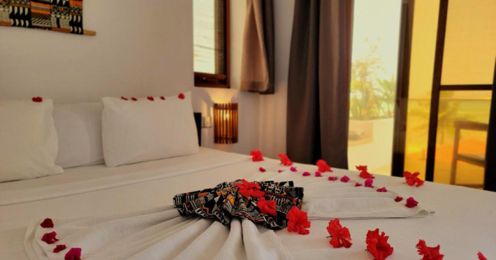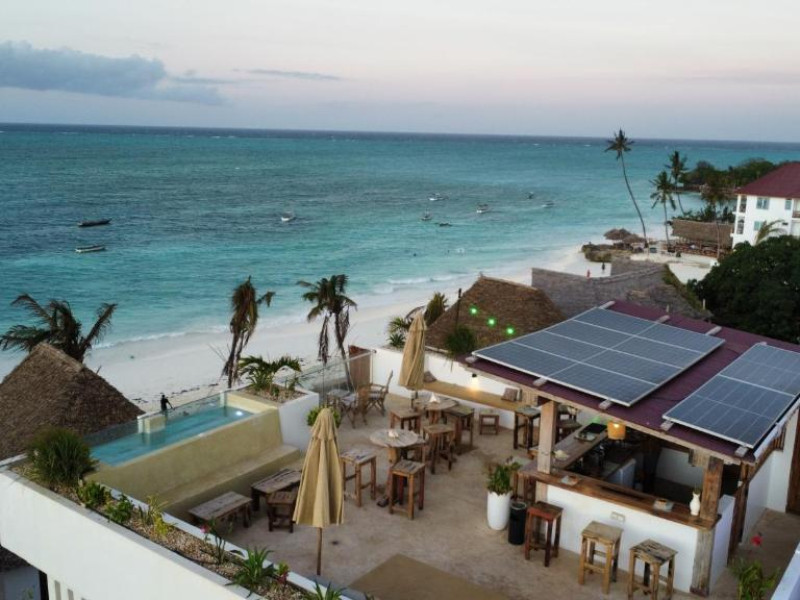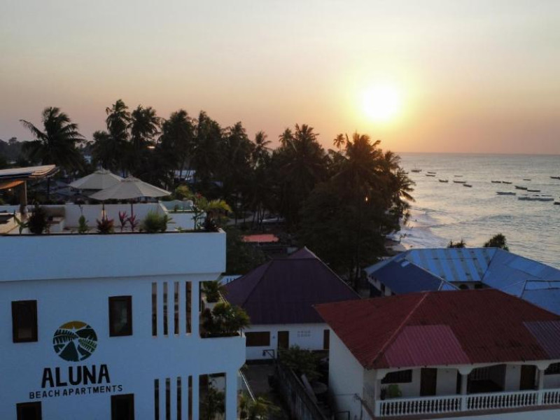 Locație pe malul mării: Aluna Beach Apartments din Nungwi oferă acces direct la plajă și vederi uimitoare la mare. Oaspeții se bucură de o terasă la soare și o piscină pe acoperiș, perfecte pentru relaxare.