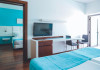 Camerele cu aer condiționat de la Hotelul Aquashow Park au un interior modern, cu podea cu parchet. Toate camerele au un televizor cu ecran plat cu canale prin cablu, un birou și un minibar.