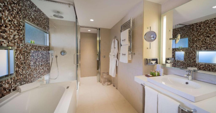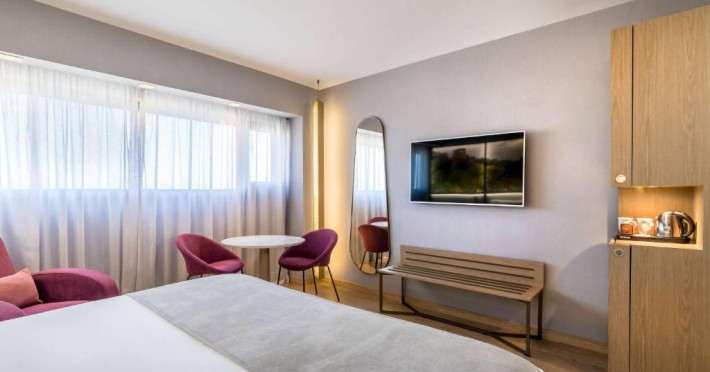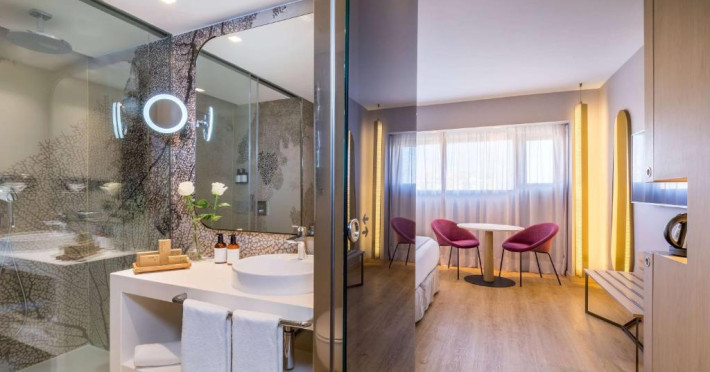 Camerele spațioase și luminoase oferă confort premium și sunt dotate cu aer condiționat, TV cu ecran plat, minibar și WiFi gratuit. Hotelul impresionează cu restaurantul său à la carte unde se servesc specialități mediteraneene și cu barul modern din lobby.
