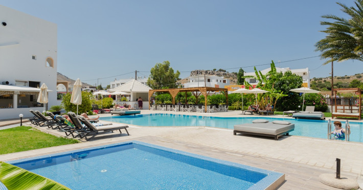 Belmare Hotel is a 4 star property with tastefully decorated rooms located in the heart of Lothiarika, in Lardos area, close to beaches, shops, and rental services. It features an outdoor pool, a bar, and a restaurant serving Greek, Caribbean, and European cuisine. The rooms have private balconies with garden, beach, or mountain views, and are recently renovated with modern amenities. The hotel offers high speed internet and promises a memorable stay for guests.