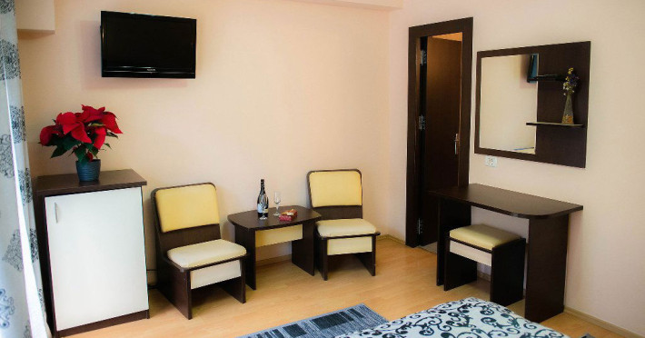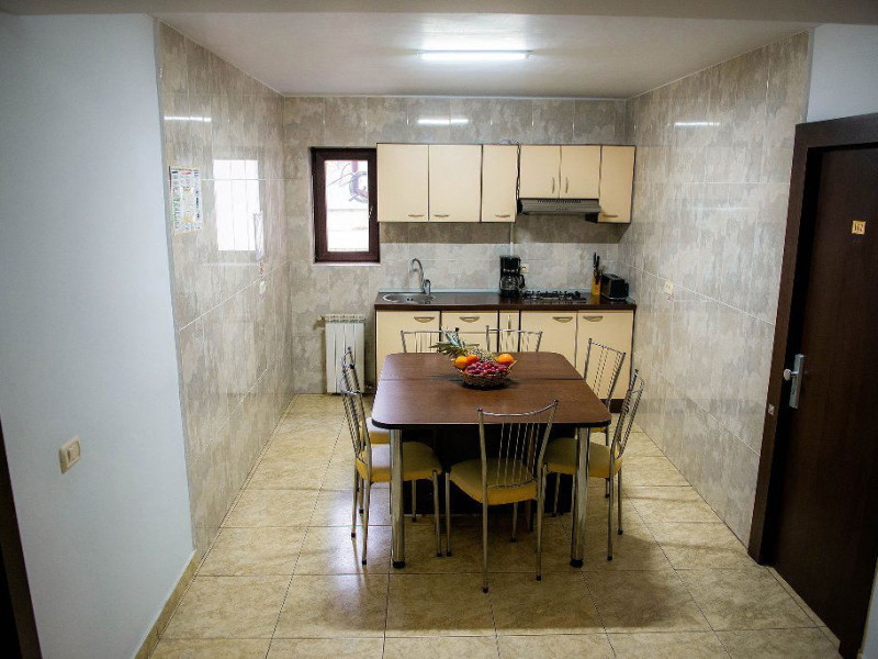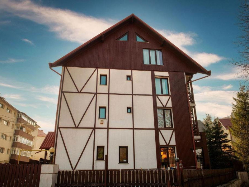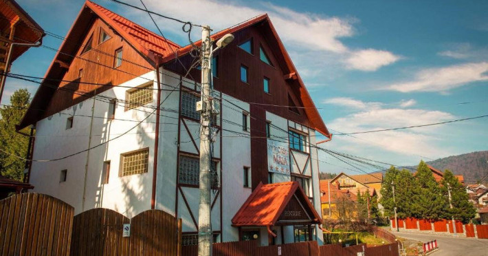 Casa Maia este o unitate de cazare situatÄ Ã®n inima staÈiunii BuÈteni, la doar 1 km de pârtia Kalinderu, oferind o experienÈÄ plÄcutÄ pentru turiÈti. AceastÄ locaÈie este structuratÄ pe 3 etaje, iar accesul se face exclusiv pe scÄri, ceea ce îi conferÄ un farmec aparte. OaspeÈii pot beneficia de facilitÄÈi precum o zonÄ de grÄtar, bucÄtÄrii comune pe fiecare etaj Èi internet, asigurând astfel confortul necesar pentru o vacanÈÄ relaxantÄ. Ãn curte, se aflÄ facilitÄÈi de relaxare, cum ar fi sauna, jacuzzi Èi ciubar, disponibile contra cost. Camerele duble sunt dotate cu un pat matrimonial, iar unele dintre ele oferÄ Èi un balcon pentru a savura peisajul montan. Apartamentele, situate la ultimul etaj, sunt mansardate Èi includ douÄ Ã®ncÄperi cu pat matrimonial, ideale pentru familii sau grupuri. Toate camerele dispun de baie proprie, TV, frigider, uscÄtor de pÄr Èi internet, asigurând astfel un sejur confortabil. Ãn apropierea hotelului, turiÈtii pot explora numeroase atracÈii turistice, cum ar fi Casa MemorialÄ George Enescu, Muzeul Memorial Cezar Petrescu, Crucea de pe Caraiman, Castelul Cantacuzino, Cascada UrlÄtoarea, PeÈtera IalomiÈei Èi multe altele. Aceste obiective oferÄ o oportunitate excelentÄ de a descoperi frumuseÈile naturale Èi culturale ale zonei. Ãn ceea ce priveÈte mesele, Casa Maia nu oferÄ servicii de restaurant, dar turiÈtii pot utiliza bucÄtÄriile comune pentru a pregÄti propriile mese. Aceasta permite oaspeÈilor sÄ se bucure de o experienÈÄ culinarÄ personalizatÄ, adaptatÄ preferinÈelor lor. Casa Maia este o alegere excelentÄ pentru cei care cautÄ cazare confortabilÄ Èi accesibilÄ Ã®n BuÈteni, fÄrÄ a accepta animale de companie.