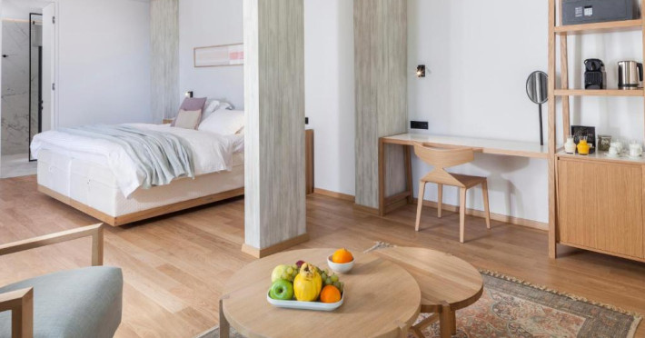 Fiecare cameră de la Coco-Mat Hotel Athens oferă TV cu ecran plat și canale prin satelit. Unele camere au balcon cu vedere la Atena, iar altele includ zonă de relaxare. Camerele oferă aparat de cafea si fierbător electric. Acestea includ baie privată cu duș și articole de toaletă gratuite.