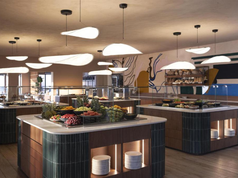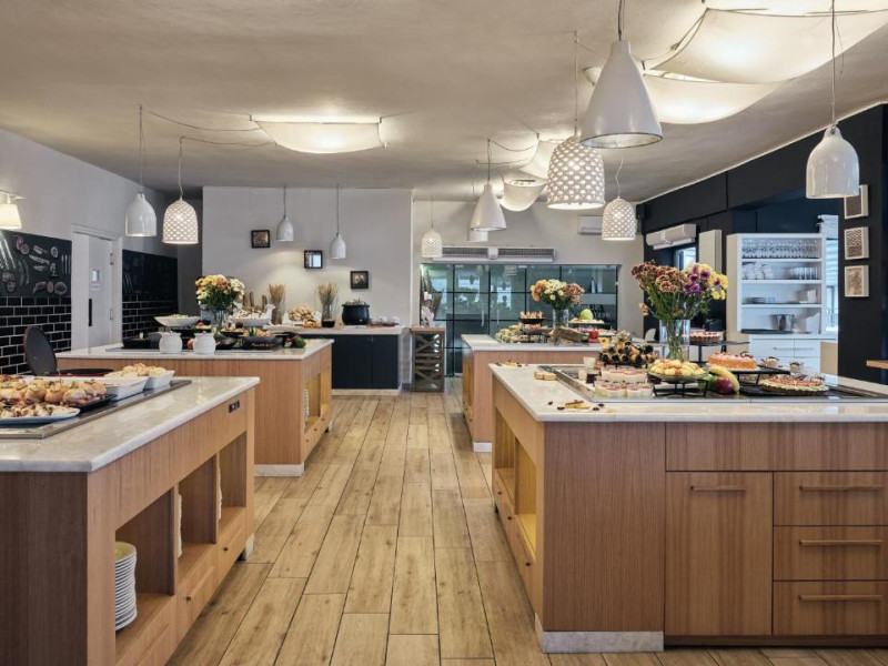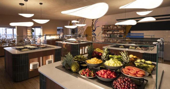 Există 5 restaurante: The Island Main Restaurant (bufet greco-mediteranean), Vatanee (gastronomie de inaltă calitate), Yellow Sea (asiatic), Amphiteatro (Tesoro Mio - italiană și Pita Canteen - lipii grecești), Greco Levante - The Griglia - exclusiv pentru oaspeții Cool Living Selection. 4 baruri, Blu Bar, The Spiritzeria, Ammos, Greco Levante - The Griglia Bar - exclusiv pentru oaspeții Cool Living Selection.