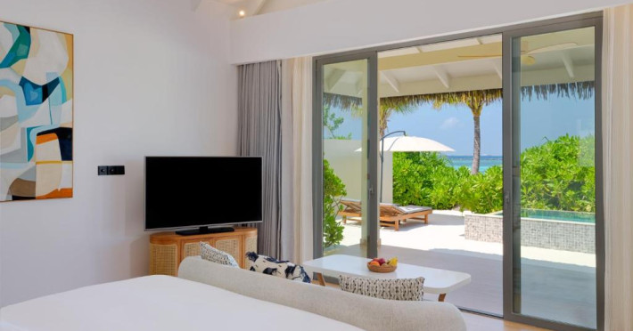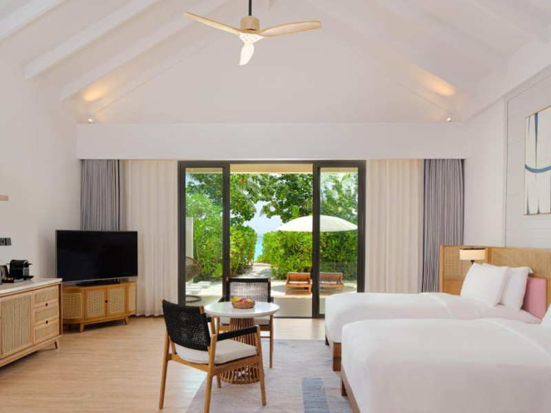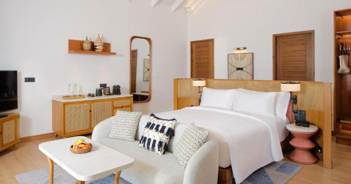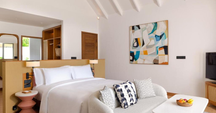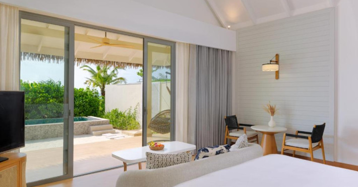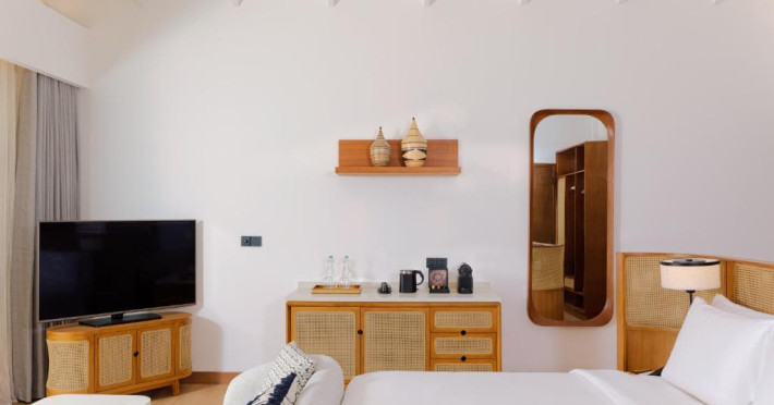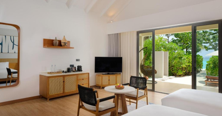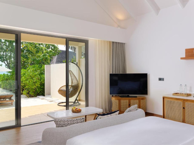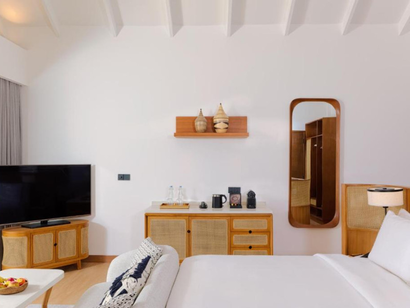 Camerele și vilele sunt decorate in stil contemporan maldivian, imbinand elementele naturale cu facilitățile moderne. Fiecare unitate de cazare oferă priveliști incredibile spre Oceanul Indian și acces facil la plajă.