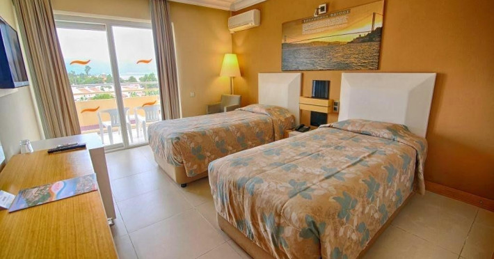 Camera dubla: baie/WC (uscator de par), aer conditionat individual, minibar (umplut cu apa la sosire), TV/sat., telefon, WiFi (gratuit), seif (gratuit), balcon.