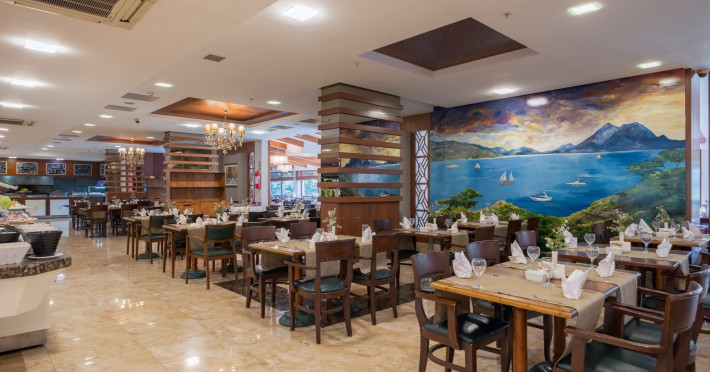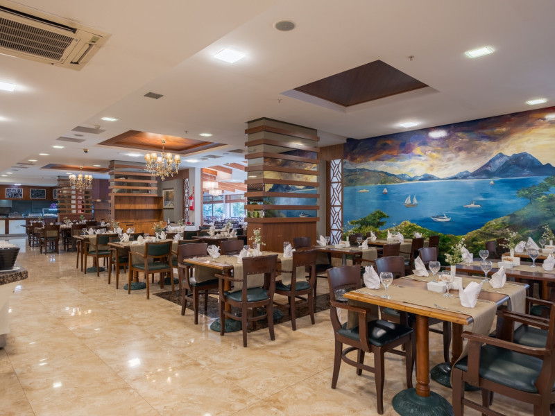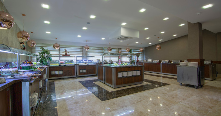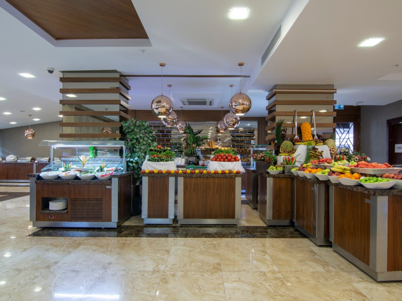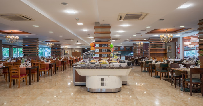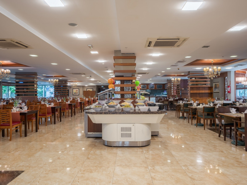 Restaurant principal: 07.00-10.00 bufet de mic dejun, 10.00-11.00 bufet de mic dejun tarziu, 12.30-14.00 bufet de pranz, 19.30-21.30 bufet de cina, 23.30-24.00 supa la miezul noptii, cafea, ceai si bauturi racoritoare servite la micul dejun si bauturi racoritoare la cina, pranz , bere, vin si bauturi alcoolice alese (toate produse local), bufet pentru copii