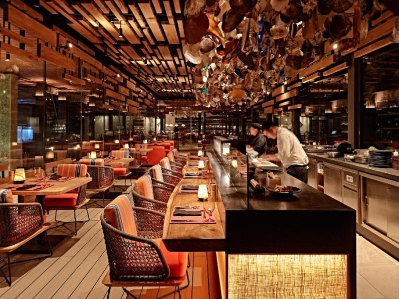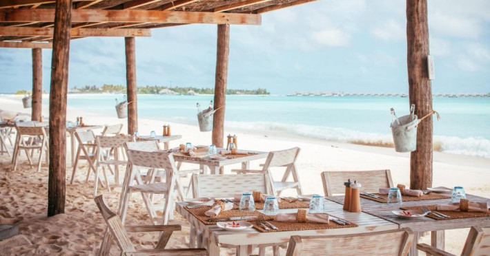 Finolhu oferă opțiuni elegante de luat masa, cu bucătăria de pe plajă in inima sa, unde oaspeții pot savura preparate internaționale preferate in orice moment al zilei. Alte opțiuni includ experiența culinară de la Crab Shack, situat la jumătatea distanței de-a lungul minunatului banc de nisip din Finolhu, sau localul asiatic de mese rafinate Kanusan. Arabian Grill, in stil boutique, celebrează amestecurile legendare de condimente ale aromelor din Orientul Mijlociu, in timp ce Milk LAB oferă gustări rapide și ușoare. Oaspeții pot savura o gustare sau o băutură impreună cu vederi spectaculoase de pe puntea superioară a Beach Club.