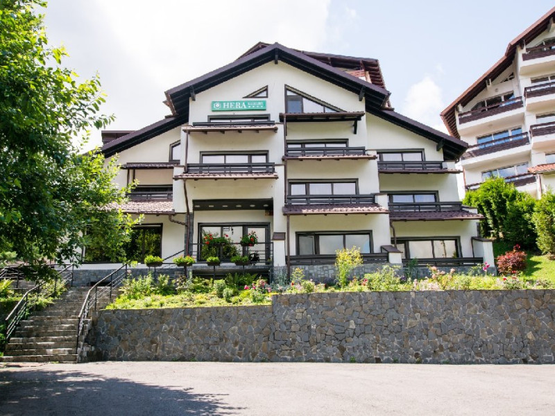 Vila Hera Luxury**** este o locatie intima, exclusivista si moderna care te invita sa descoperi confortul de acasa, departe de casa. Situata in Predeal, pe strada Trei Brazi nr. 8, vila cu accente luxoase va pune la dispozitie zece camere duble, foisor (fara posibilitatea de a face gratar) si parcare privata. Micul dejun se serveste la restaurantul Hotelului Hera, contra cost, aflat la 120m distanta fata de vila. Piscina nu este inclusa in tarif, puteti beneficia de piscina si sauna la Hotel Hera, contra cost. Hera Luxury este despre bucuria clipelor frumoase, petrecute alaturi de cei dragi, despre liniste si zambete. Bucurati-va de luxul unei vacante confortabile la inaltime! De asemenea check-in-ul pentru vila se face la receptia hotelului Hera. NU SE ACCEPTA ANIMALE DE COMPANIE. ADULT ONLY