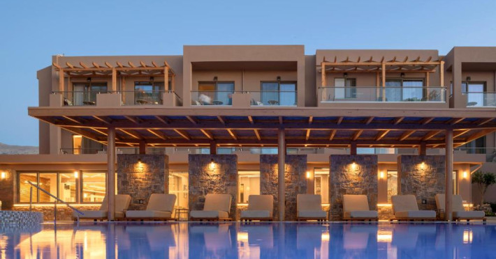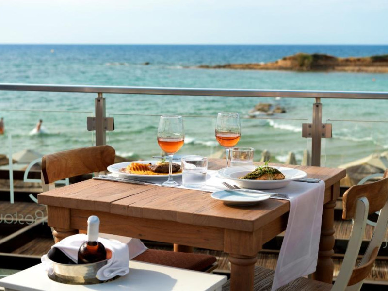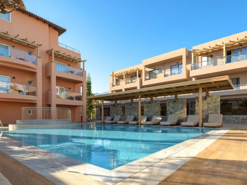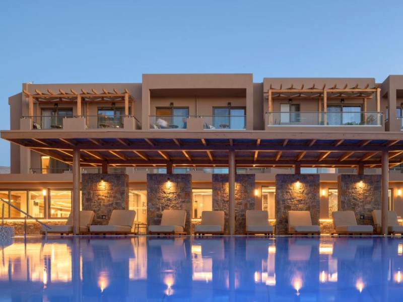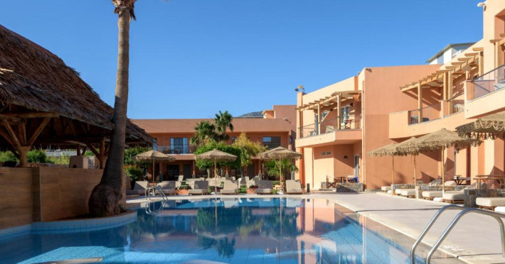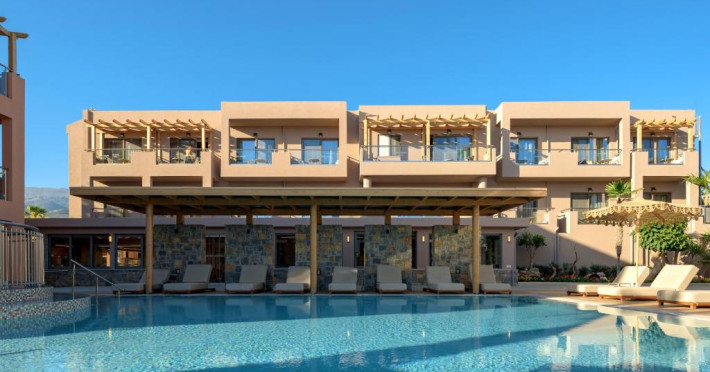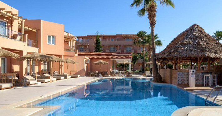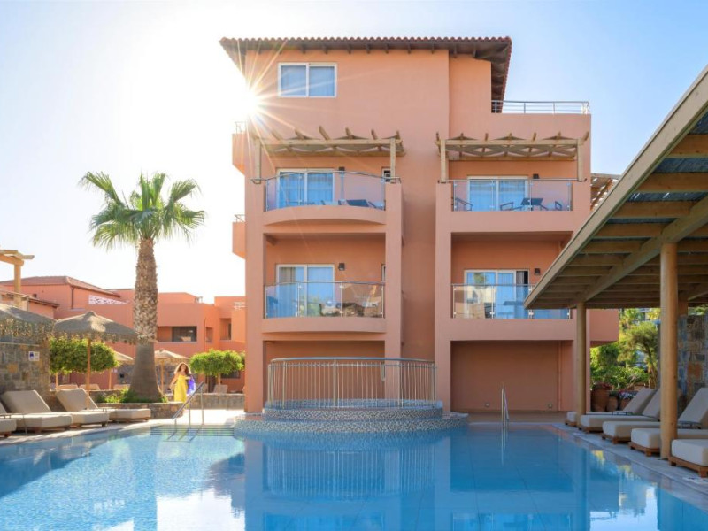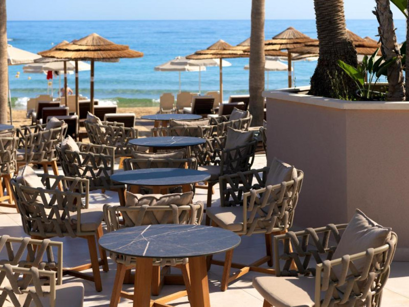 Complexul se remarcă prin două piscine exterioare inconjurate de șezlonguri și umbrele, perfecte pentru relaxare. Restaurantul principal servește preparate din bucătăria grecească și internațională, iar barul de la piscină oferă cocktailuri răcoritoare și gustări pe tot parcursul zilei.