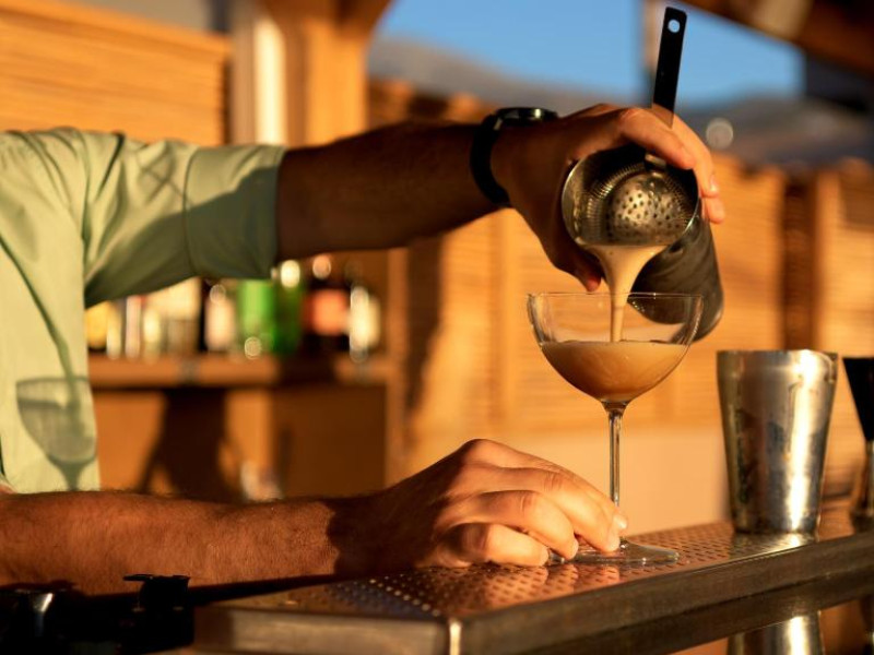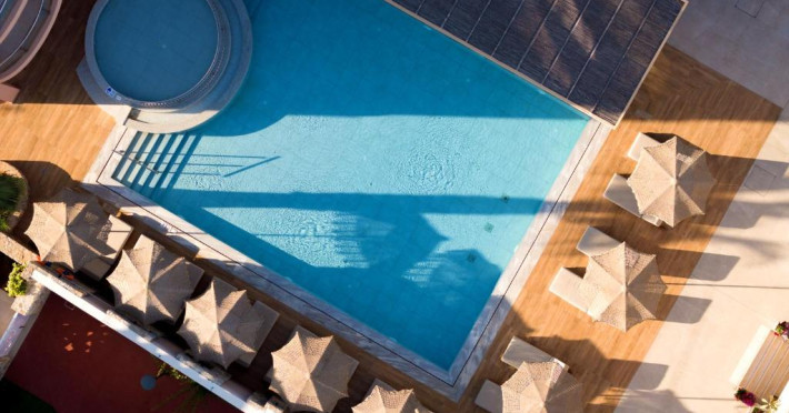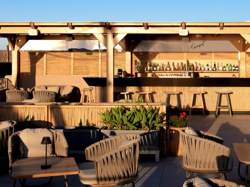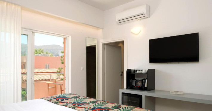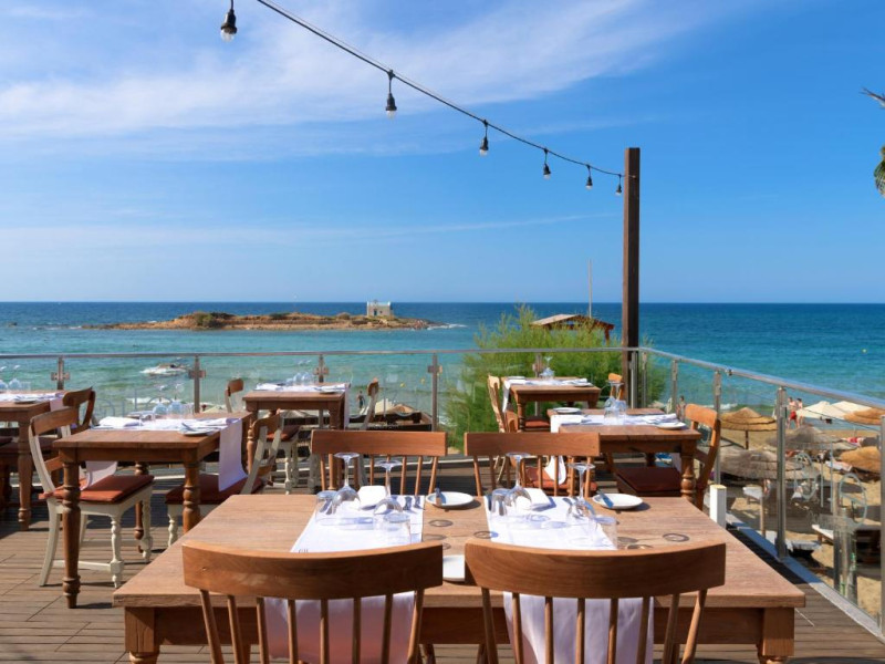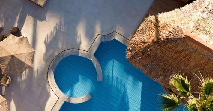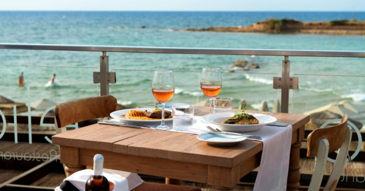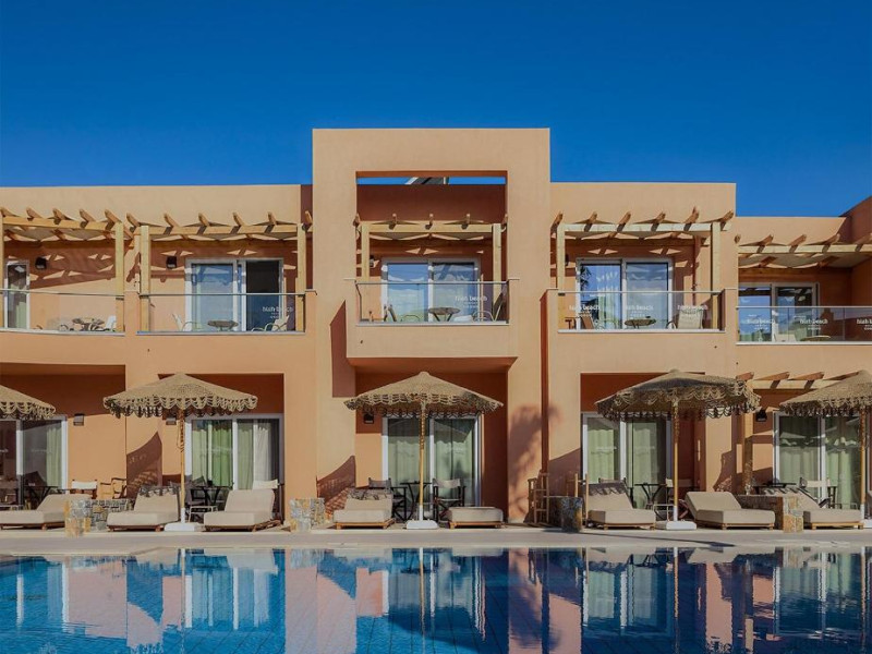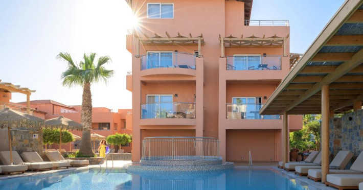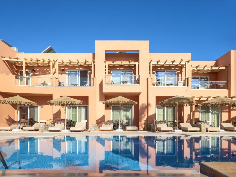 Complexul se remarcă prin două piscine exterioare inconjurate de șezlonguri și umbrele, perfecte pentru relaxare. Restaurantul principal servește preparate din bucătăria grecească și internațională, iar barul de la piscină oferă cocktailuri răcoritoare și gustări pe tot parcursul zilei.
