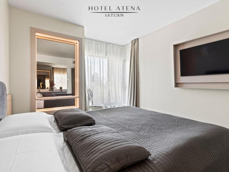 Hotel Atena*** se află la 2 minute de mers pe jos de Plaja Paradiso și la 400 m de Plaja Saturn. Aeroportul Internațional Mihail Kogălniceanu se află la 65 km.