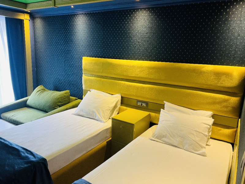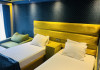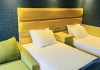 DESCRIERE CAMERE Numar total camere: 153 dintre care 116 Camere Duble Etaj, 26 Camere Family Parter si 11 apartamente Camerele Duble sunt situate la etajele 1, 2 sau 3, pot fi twin sau matrimoniale si au suprafata de 16 mp (dimensiune pat matrimonial 160/ 200 cm, dimensiune fotoliu extensibil 110/ 180 cm). Camerele Family sunt situate la parter, au terasa, pot fi twin sau matrimoniale si au suprafata de 20 mp (dimensiune pat matrimonial 160/ 200 cm, dimensiune pat twin 100/ 200 cm, dimensiune canapea extensibila 150/ 180 cm). Apartamentele sunt situate la parter, in corpul mic B, se compun din 2 camere comunicante (cu paturi matrimoniale/twin fiecare 160/ 200), 2 bai cu dus, terasa comuna si foarte generoasa. Dotari camere: TV LCD, aer conditionat, minibar, telefon, internet wi-fi, balcon sau terasa.