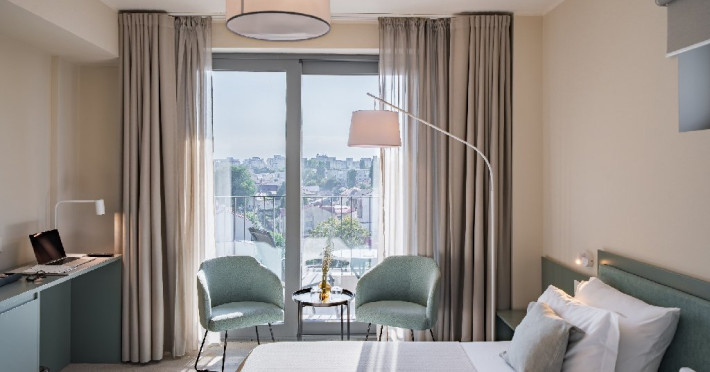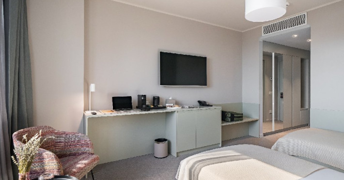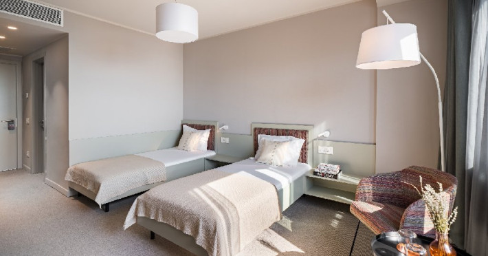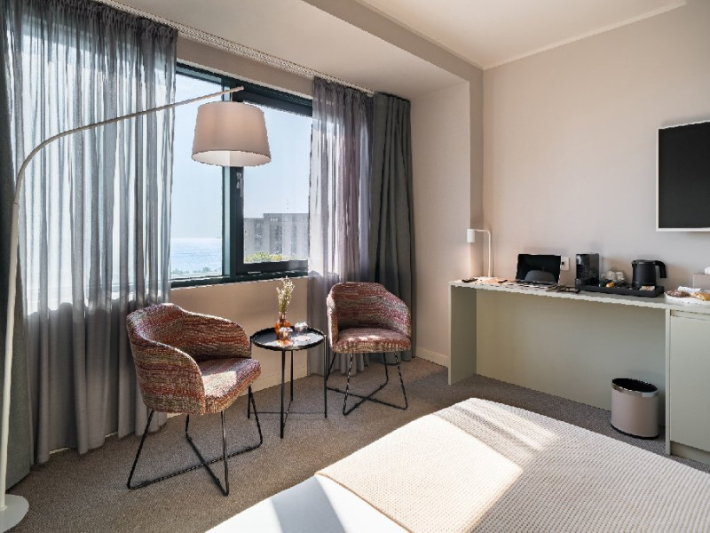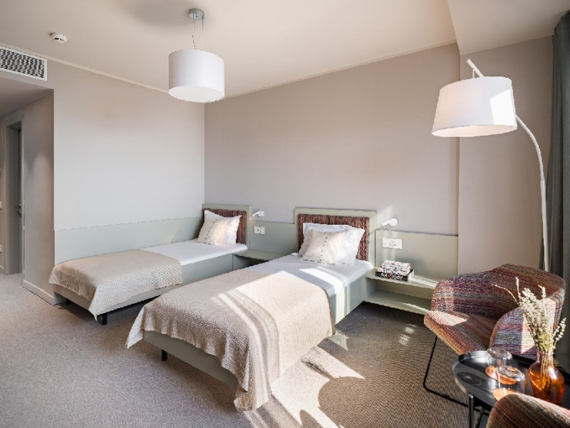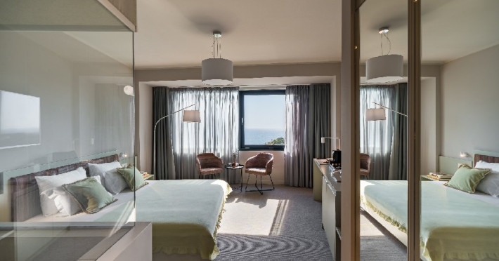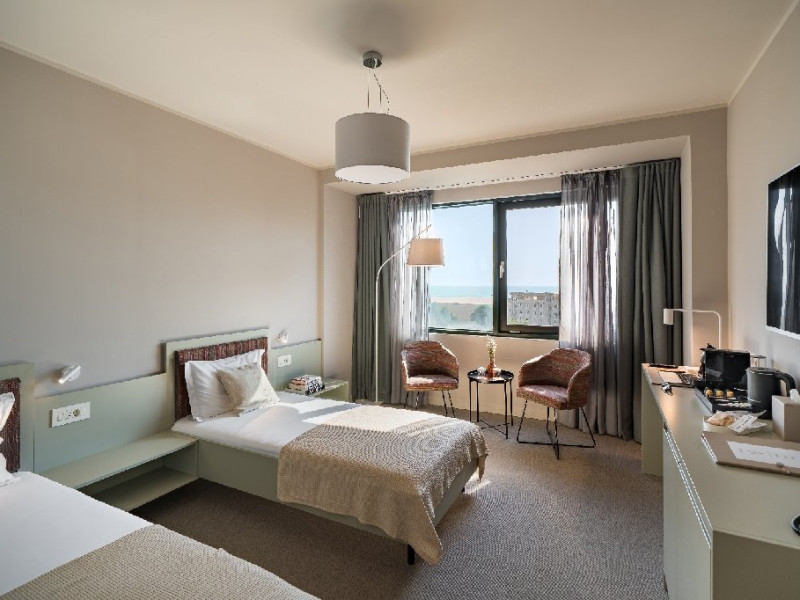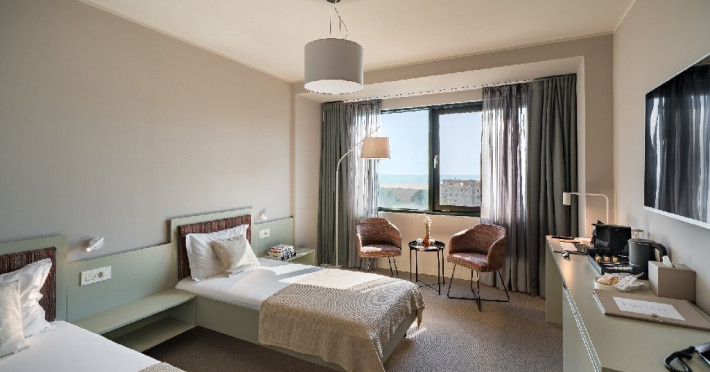 6 Camere twin deluxe Camera cu 2 paturi, priveliste la mare, suprafata de 24mp, minibar, baie cu cada.