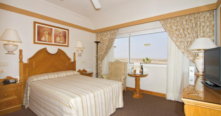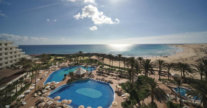 Hotel Riu Palace Tres Islas, un resort elegant de 4 stele din Corralejo, se inalță maiestuos pe plaja Grandes Playas din Fuerteventura. Poziționat direct pe țărmul nisipos, hotelul oferă acces privilegiat la una dintre cele mai spectaculoase plaje din arhipelagul Canare, cu nisip fin și ape cristaline.