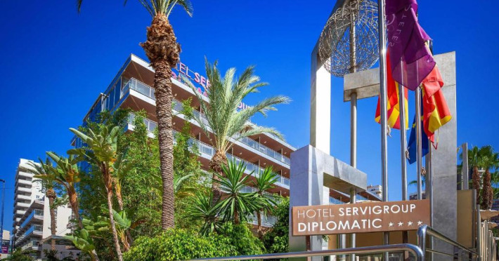 Hotelul Servigroup Diplomatic 4 Sup este situat la doar 225 de metri de plaja Levante din Benidorm, aproape de Plaza Triangular. Acesta are 4 piscine, un centru de wellness și camere cu acces gratuit la internet Wi-Fi și balcoane.