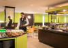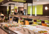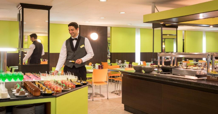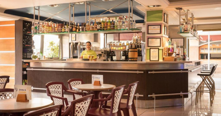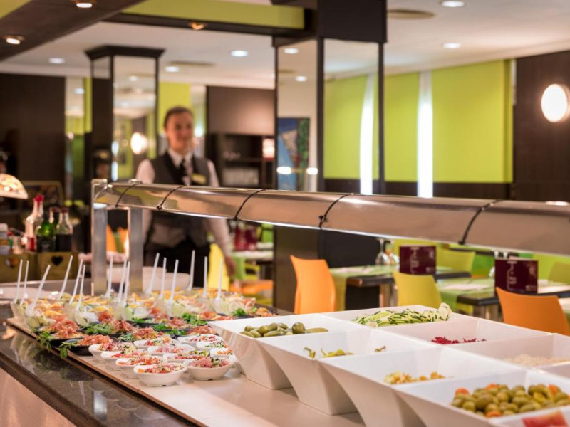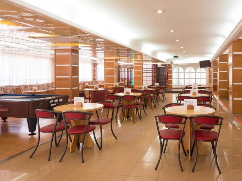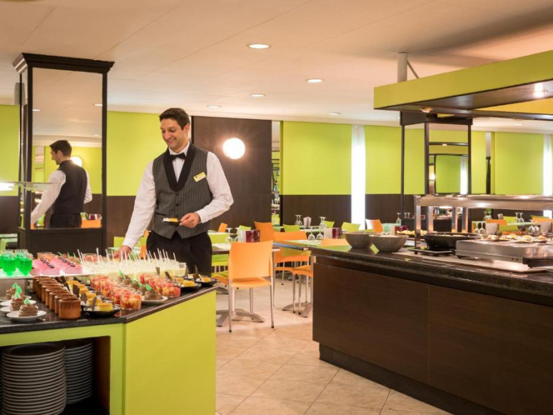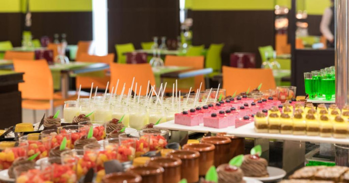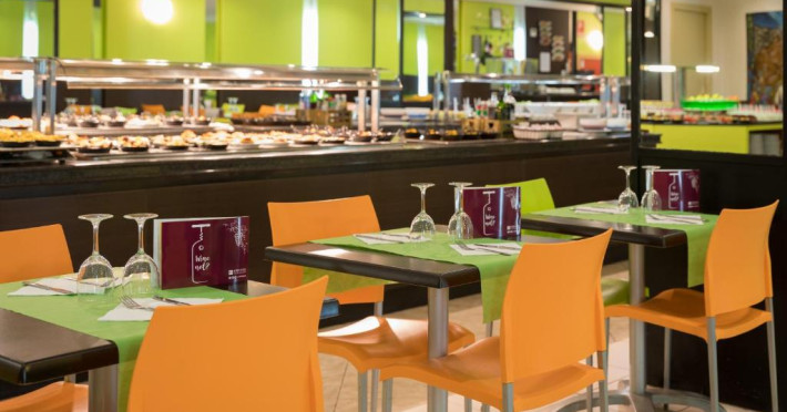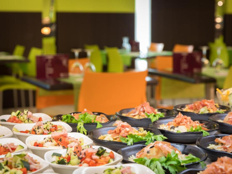 Restaurantul de tip bufet servește preparate mediteraneene și internaționale. Hotelul oferă, de asemenea, un bar și o terasă comună cu șezlonguri. La proprietate există și un distribuitor automat de băuturi.