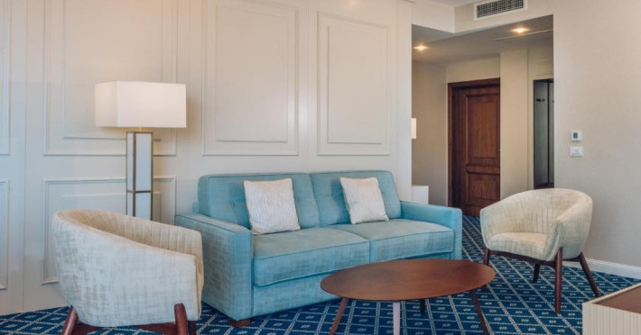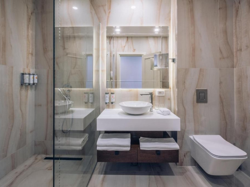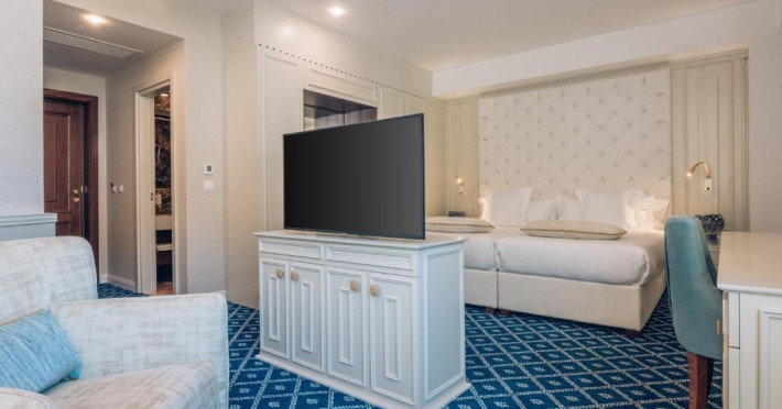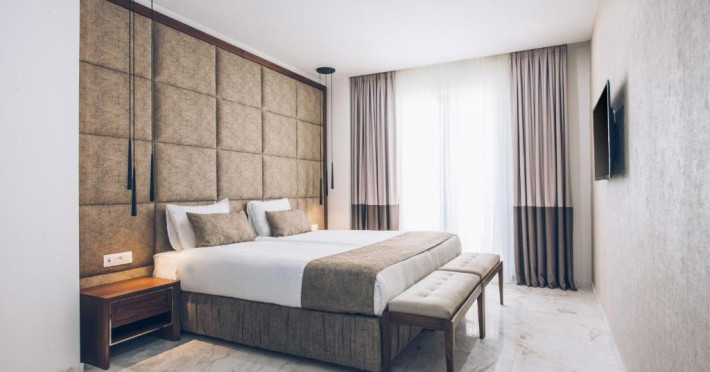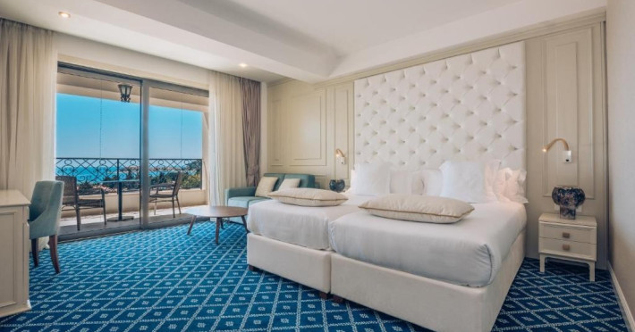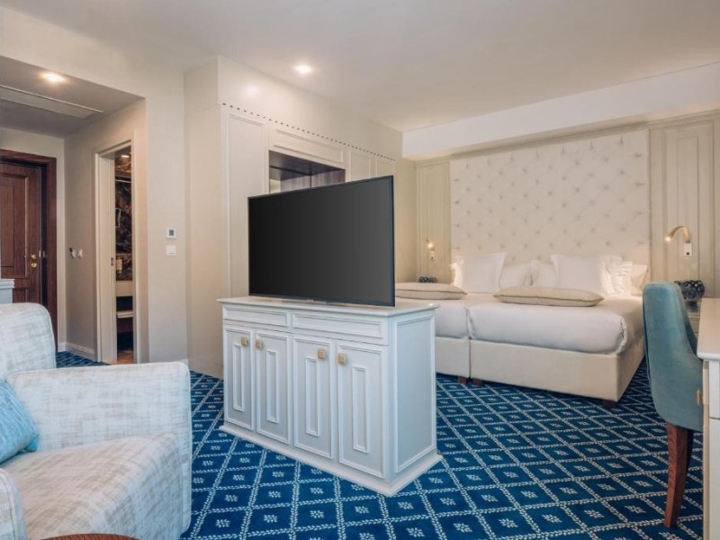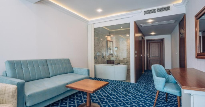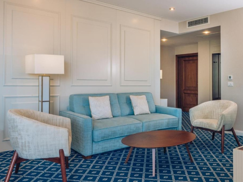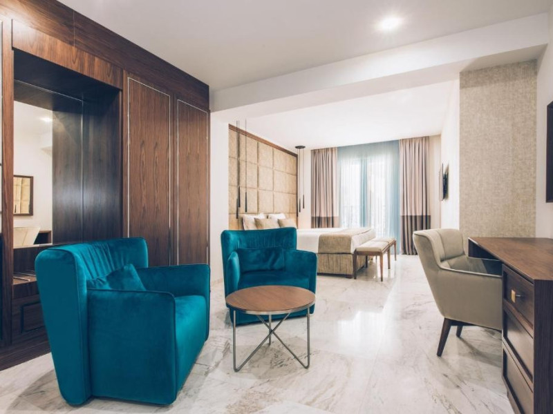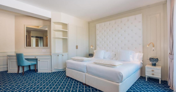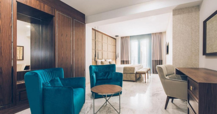Camera dubla: 29-38 m2, baie/WC (uscator de par), telefon, TV/sat., minibar, seif, aer conditionat, masa si fier de calcat, balcon sau terasa/in unele camere.