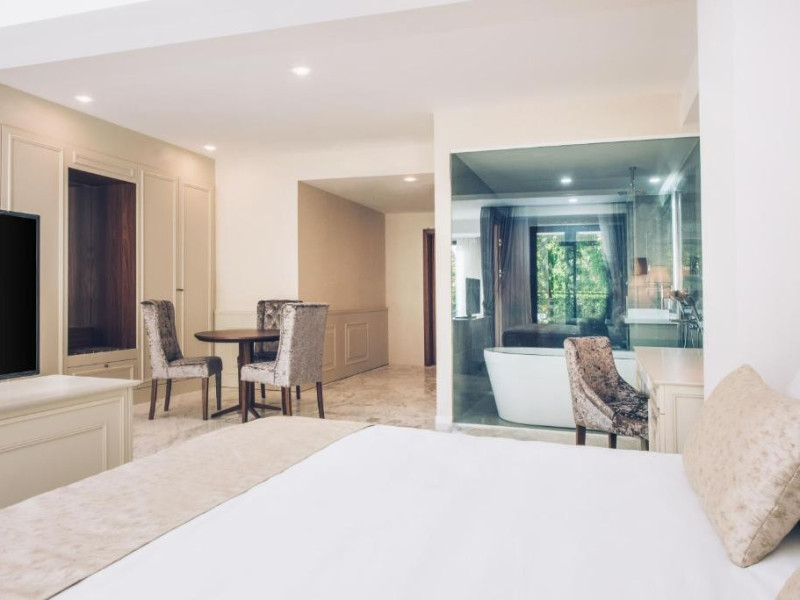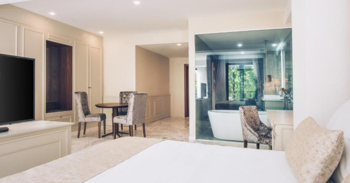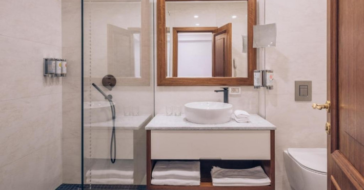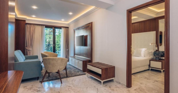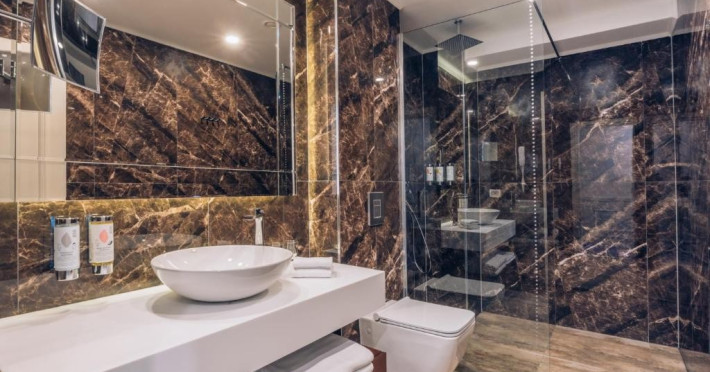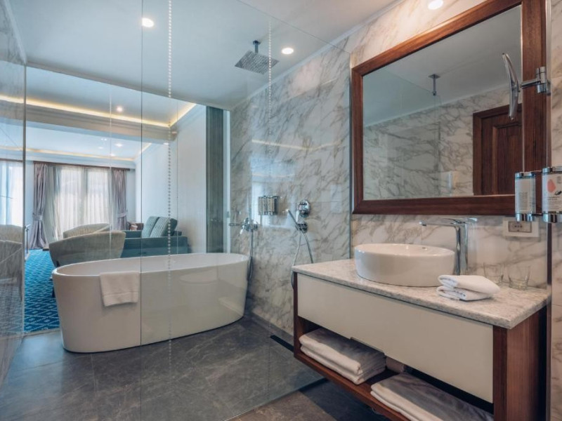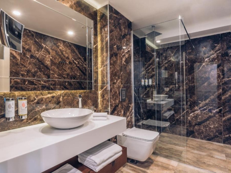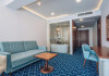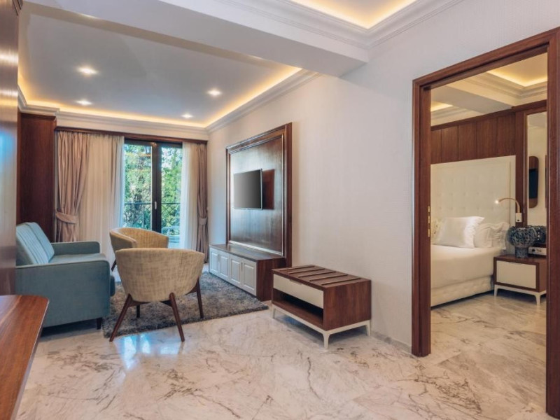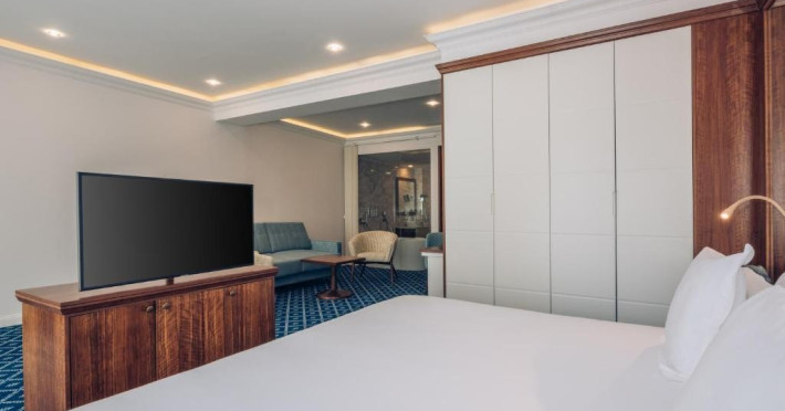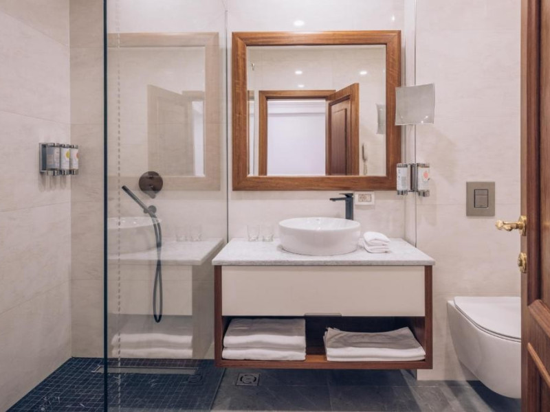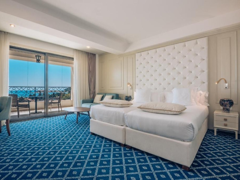 Camera dubla: 29-38 m2, baie/WC (uscator de par), telefon, TV/sat., minibar, seif, aer conditionat, masa si fier de calcat, balcon sau terasa/in unele camere.
