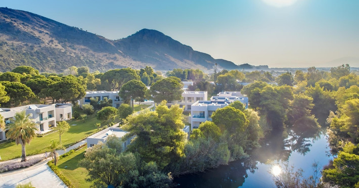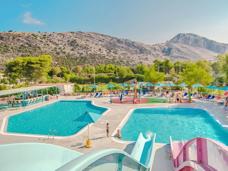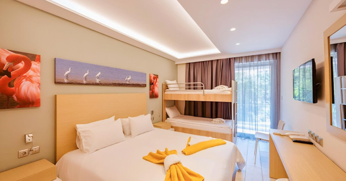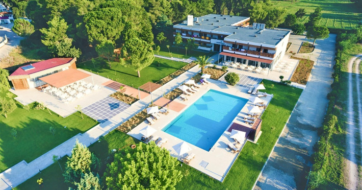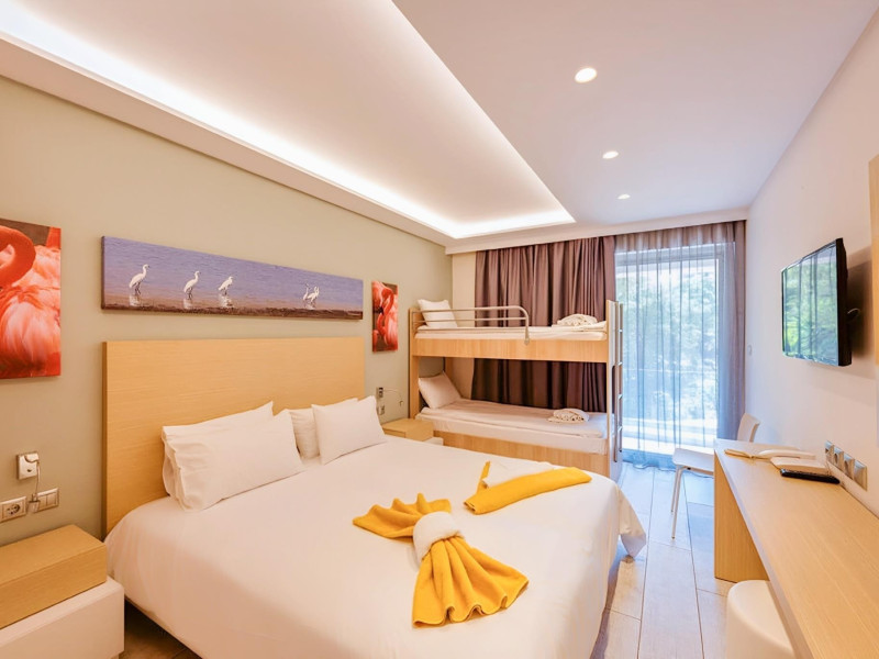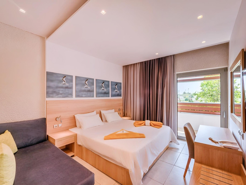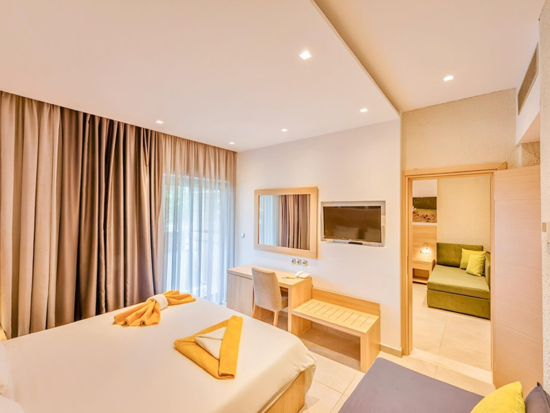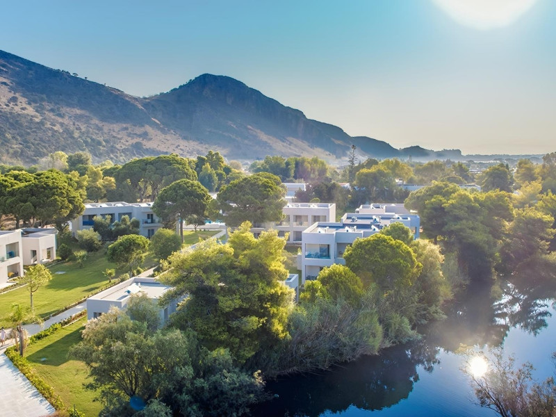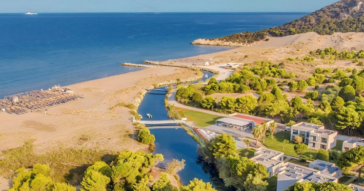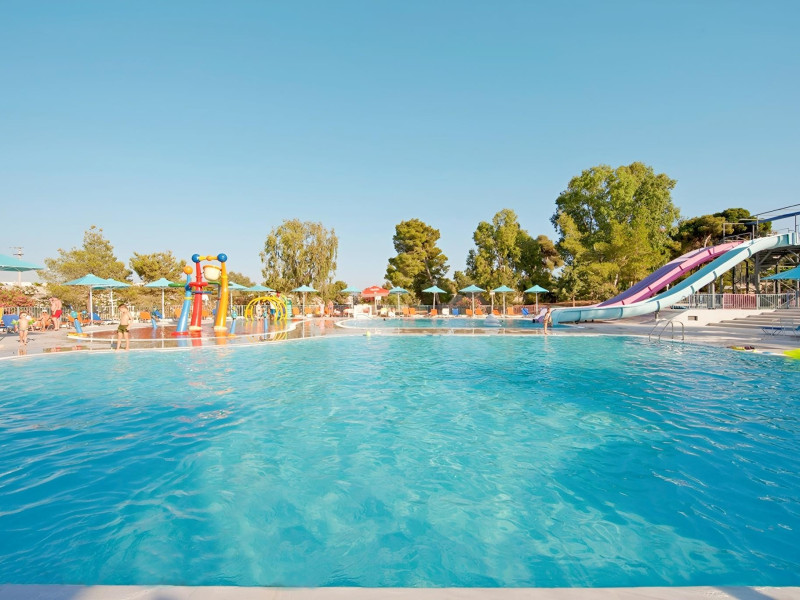 Complexul hotelier inconjurat de verdeata are propria plaja (umbrele si sezlonguri gratuite), iar raul Larissos curge prin complex. Hotel este potrivit pentru familii cu copii.