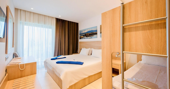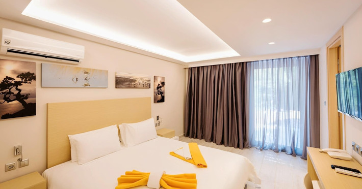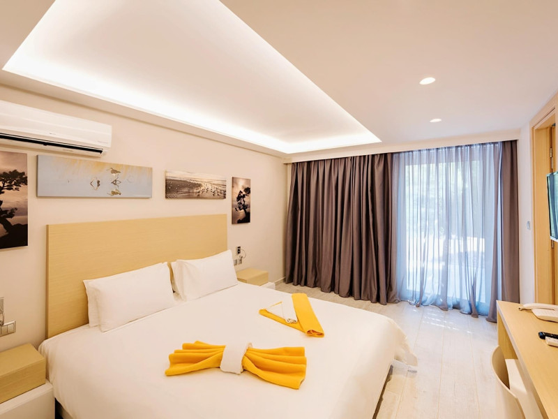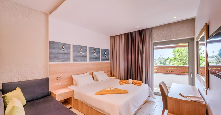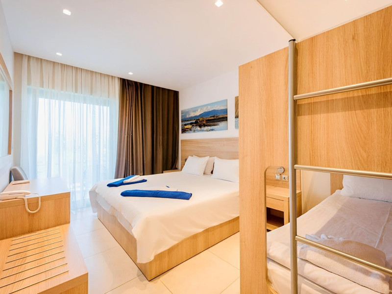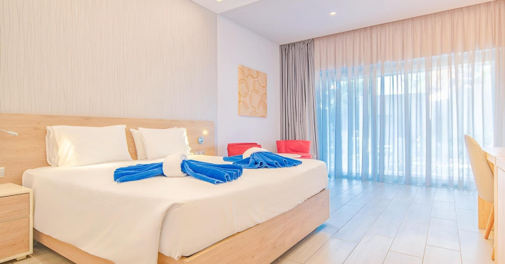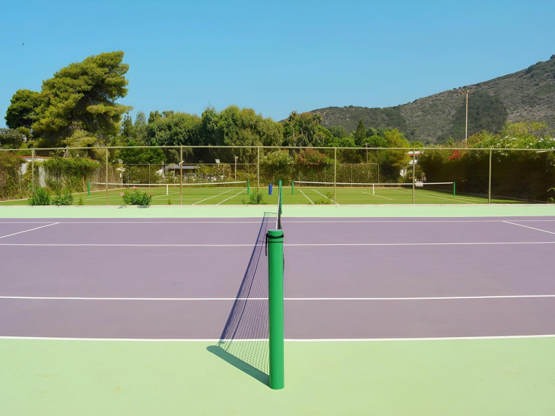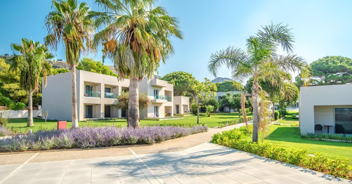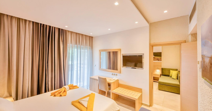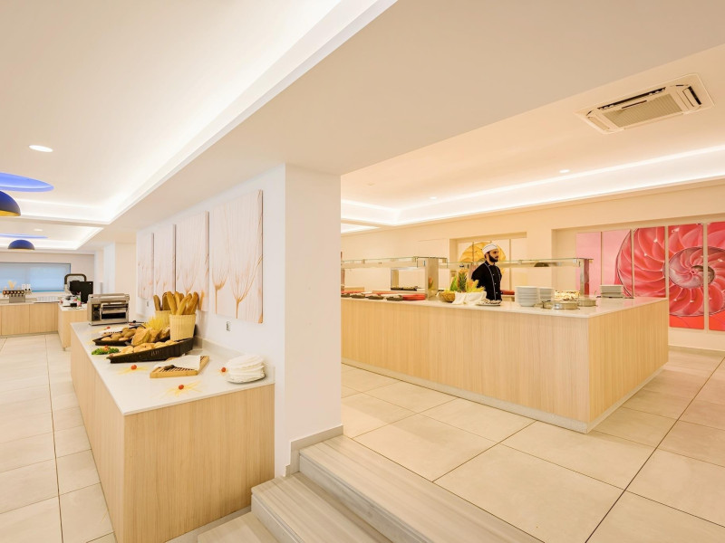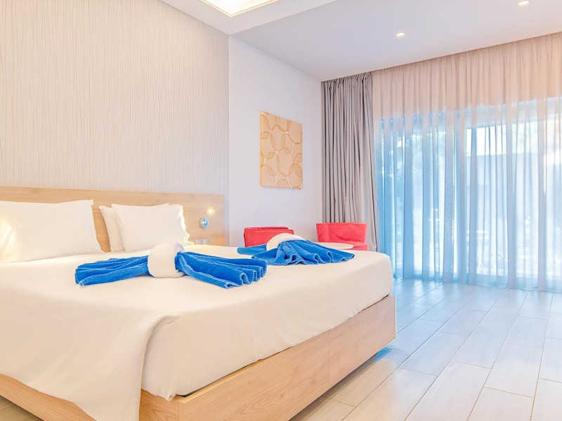 Complexul hotelier inconjurat de verdeata are propria plaja (umbrele si sezlonguri gratuite), iar raul Larissos curge prin complex. Hotel este potrivit pentru familii cu copii.