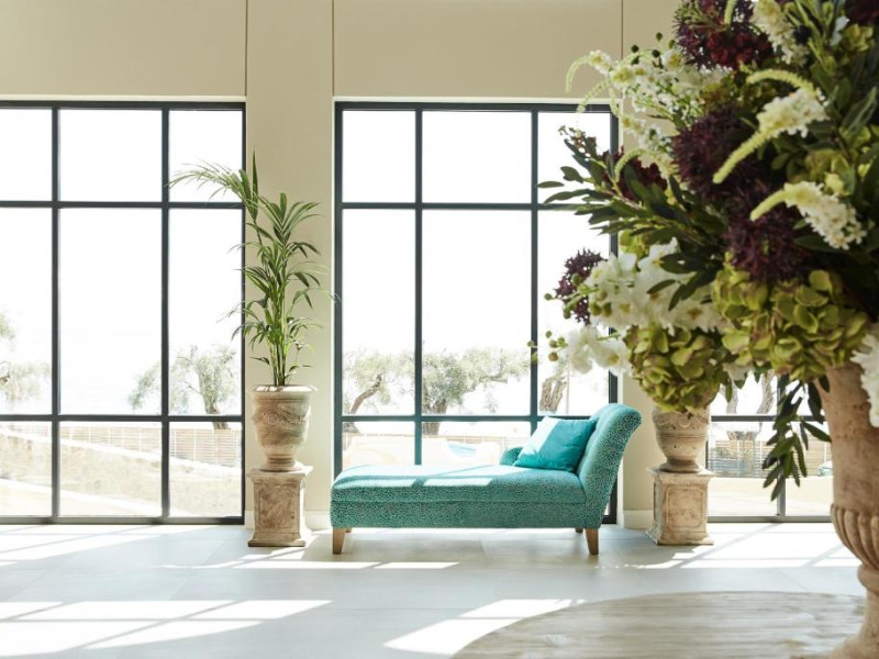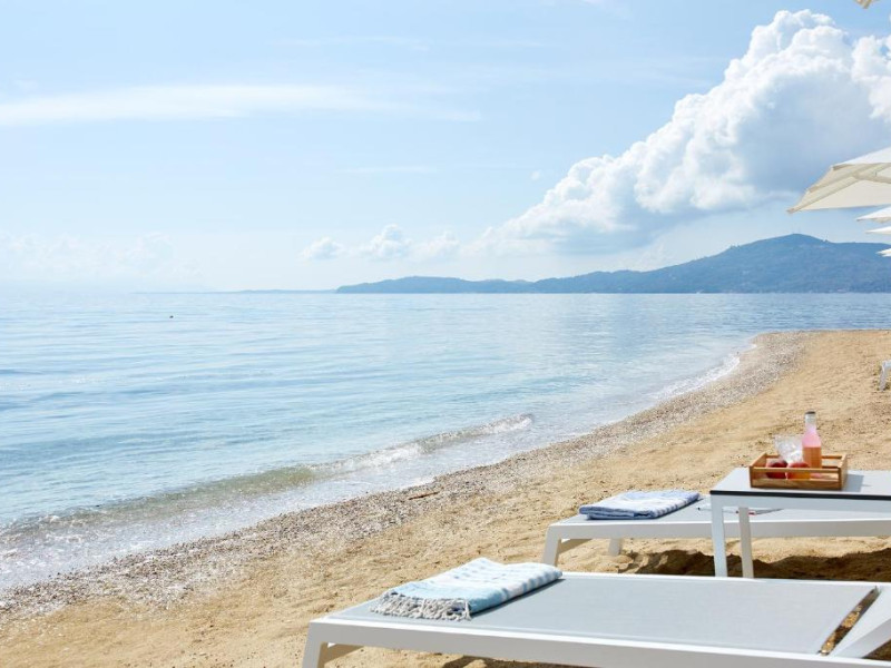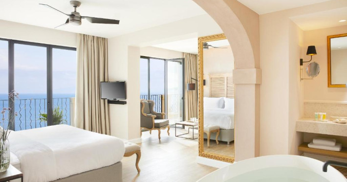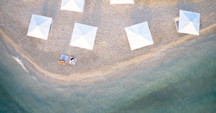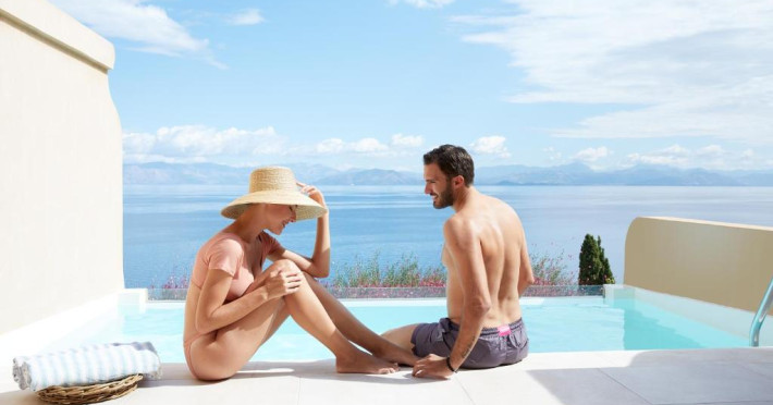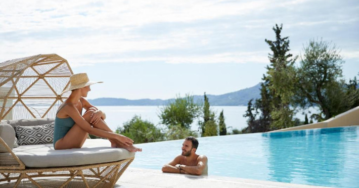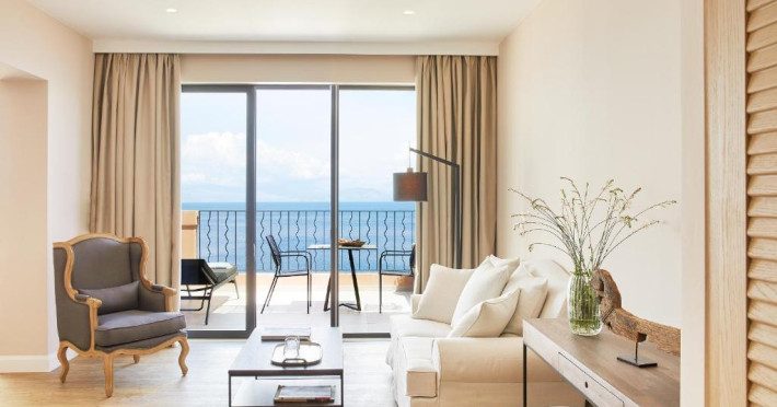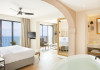 Camerele și suitele, decorate in tonuri naturale specifice arhitecturii cicladice, imbină eleganta cu confortul modern. Piscina infinity cu șezlonguri și baldachine private creează cadrul perfect pentru momente de relaxare sub soarele grecesc.