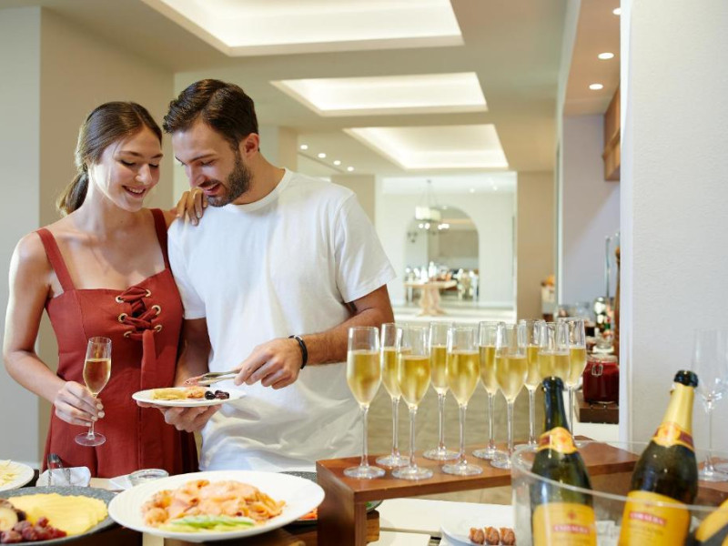 Restaurantul principal al hotelului servește preparate mediteraneene autentice, iar barul de la piscină oferă cocktailuri creative și gustări ușoare pe tot parcursul zilei. Pentru răsfăț total, oaspeții au la dispoziție centrul spa cu tratamente personalizate și masaje.