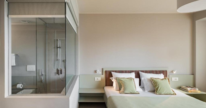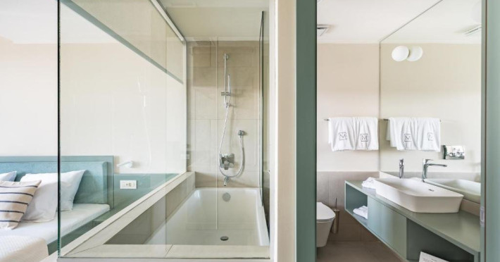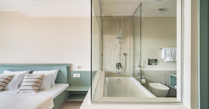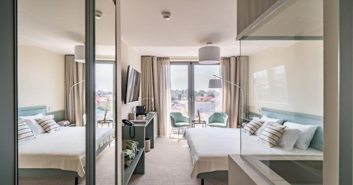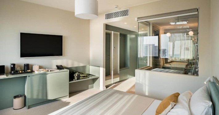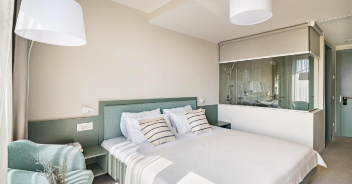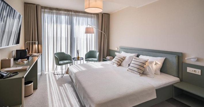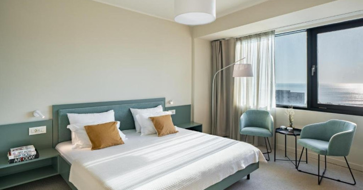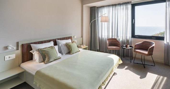 6 Camere twin deluxe Camera cu 2 paturi, priveliste la mare, suprafata de 24mp, minibar, baie cu cada.