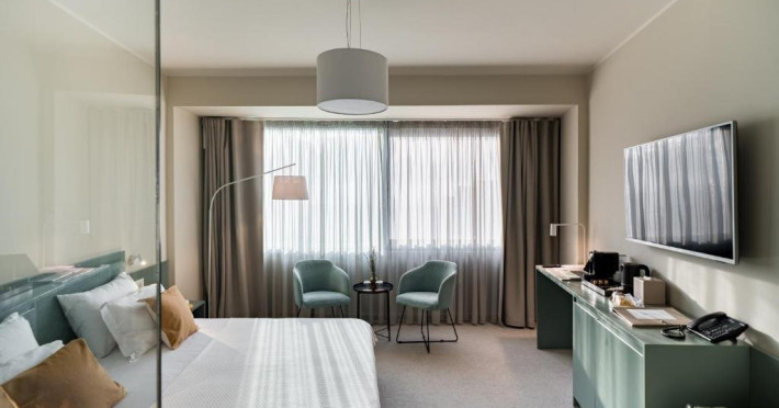 DESCRIERE CAMERE Dotari camere: aer conditionat, TV cu ecran plat, minibar, Wi-Fi gratuit, seif, articole de toaleta si uscator de par, papuci de interior, halat de baie, expresor Nespresso si ceainic.