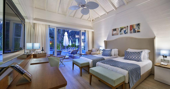 Hotelul este localizat in statiunea Beldibi, la 36 de km de aeroportul din Antalya si la 16 km de orasul Kemer. Acest complex construit in 2014 se intinde pe o suprafata foarte mare cu verdeata, piscine exterioare si spatii de relaxare. Cazarea se face in 2 cladiri principale de 3 nivele, 11 cladiri in gradina si 122 de vile cu 2 sau un nivel. Acest hotele este inconjurat de verdeata si are o plaja privata cu nisip si pietris, 3 debarcadere si un centru SPA. Turistii pot savura preparate locale si internationale in restaurantul hotelului sau diferite bauturi in barul de la piscina sau de pe plaja.
