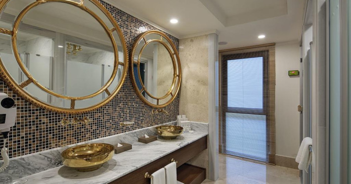 Camerele sunt dotate cu telefon, TV LCD satelit, minibar, sr conditionat centralizat, seif, baie cu dus, uscator de par, halat de baie, papuci, balcon, internet WI-FI.
