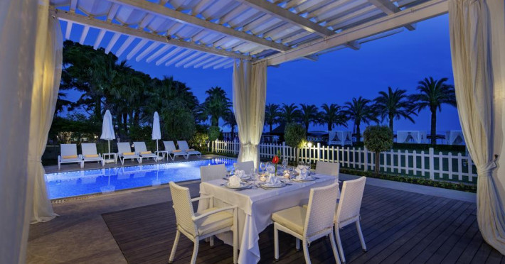 Localizare: Hotelul Papillon Aysha este situat la 3 km de Belek, 45 km de Antalya si 33 km fata de aeroportul din Antalya, pe plaja, chiar langa terenurile de golf Gloria. Facilitati hotel: Restaurante: restaurant principal, 2 restaurante a la carte (turcesc si japonez), baruri, discoteca, Piscine: piscina in aer liber, piscina acoperita, piscina pentru copii, Plaja: plaja cu nisip fin, dus si cabine de schimb, Alte facilitate: mini club (4-12 ani), cinematograf, baby sitter, sala de jocuri, internet cafe, jocuri electronice, sauna, baie turceasca, fitness, centru de sanatate (asistenta medicala 24 ore), sala de conferinte si intruniri, shopping center (bijuterii, rent a car, fotograf, boutique, magazin de suveniruri). Sporturi: volei pe plaja, tenis de masa, gimnastica aerobica, sporturi nautice, tenis de camp, polo, tir, baschet, biliard, badminton, mini fotbal, Facilitati camere: Toate camerele sunt echipate cu aer conditionat/incalzire, telefon, TV satelit, mini bar, uscator de par, balcon, seif. Vilele au in general o suprafata de 190 m2 si sunt alcatuite din 2 dormitoare, o camera de zi, o camera principala chicineta, baie, piscina privata si jacuzzi. Accesul la internet este disponibil doar in salon bar, sala de conferinte si lobby.