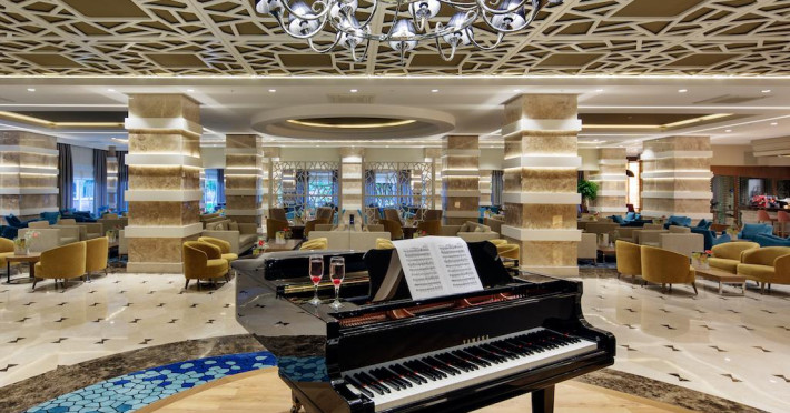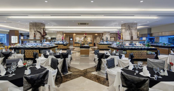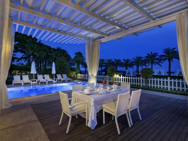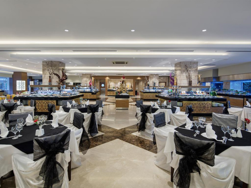 Hotelul pune la dispozitia turistilor sai: restaurant principal (acoperit - capacitate 450 locuri, in aer liber - capacitate 650 locuri), 2 restaurante a la carte (turcesc si japonez), baruri, discoteca, piscina in aer liber, piscina acoperita, piscina pentru copii, plaja cu nisip fin, dus si cabine de schimb, mini club (4-12 ani), cinematograf, baby sitter, sala de jocuri, internet cafe, jocuri electronice, sauna, baie turceasca, fitness, centru de sanatate (asistenta medicala 24 ore), sala de conferinte (capacitate 600) ce poate fi transformata in 3 sali mai mici (capacitate 200 fiecare), 2 sali de intruniri (capacitate 40 fiecare), volei pe plaja, tenis de masa, gimnastica aerobica, sporturi nautice, tenis de camp, polo, tir, baschet, biliard, badminton, mini fotbal, shopping center (bijuterii, rent a car, fotograf, boutique, magazin de suveniruri).