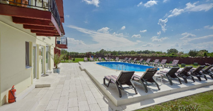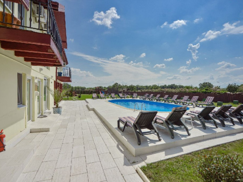INFORMATII GENERALE Pensiunea Ovidiu este situata in Rezervatia Biosferei Deltei Dunarii, mai exact in satul Crisan, pe bratul Sulina, iar accesul la locatie se face doar pe apa. FACILITATI UNITATE Aceasta pensiune ofera o piscina in aer liber care functioneaza sezonier, curte spatioasa restaurant cu terasa, ciubar (contracost), excursii cu barca, loc de joaca pentru copii, pescuit. DESCRIERE CAMERE Camerele duble dispun de un pat matrimonial sau doua paturi twin. Camerele triple includ un pat matrimonial si un pat single. Camerele family au o singura incapere formata din pat matrimonial si doua paturi single. Toate tipurile de camere dispun de baie proprie, aer conditionat, TV, Wi-Fi, minibar, uscator de par. LOCALIZARE Pensiunea Ovidiu este situata in Rezervatia Biosferei Deltei Dunarii, mai exact in satul Crisan, pe bratul Sulina, iar accesul la locatie se face doar pe apa.