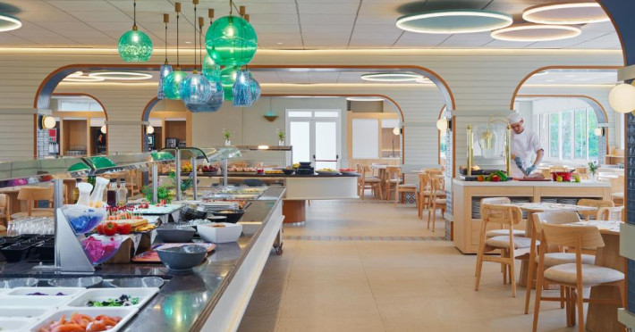 Oferă două piscine in aer liber, una dintre ele pentru copii, un bar cu gustări și un restaurant tip bufet cu bufet pentru copii.