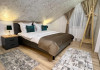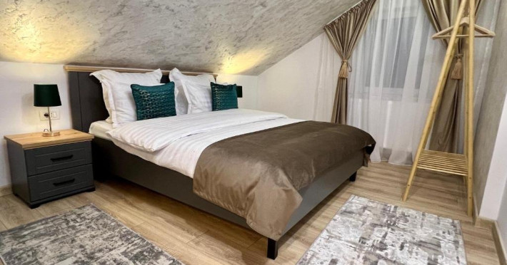 Dormitorul spatios, dotat cu pat king-size si TV LCD, asigur odihn de calitate intr-un cadru linistit si cochet.