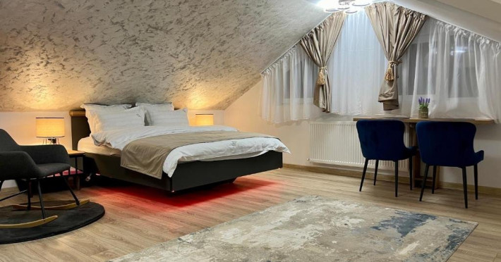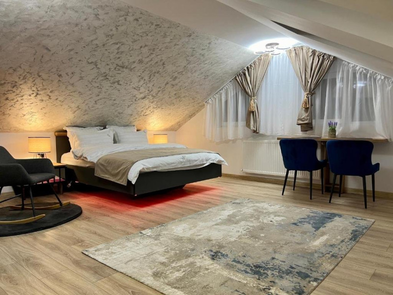 Situat la mansarda, studioul imbin intimitatea, eleganta si linistea absolut, fiind alegerea ideal pentru cupluri sau turisti care isi doresc un sejur relaxant in apropierea naturii.