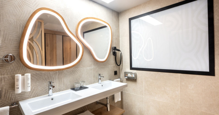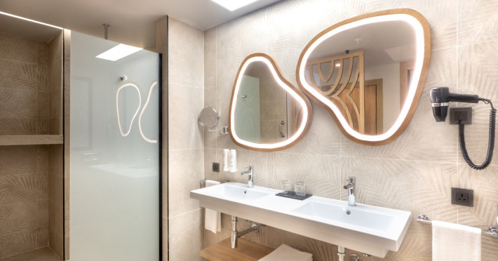 Junior Suite: 37m², baie/WC (uscator de par), pat dublu (king size) sau 2 paturi single (twin), aer conditionat, ventilator de tavan, TV/sat., telefon, canapea, minibar, fierbator pentru prepararea de cafea si ceai, seif, fier de calcat, masa de calcat, balcon sau terasa.