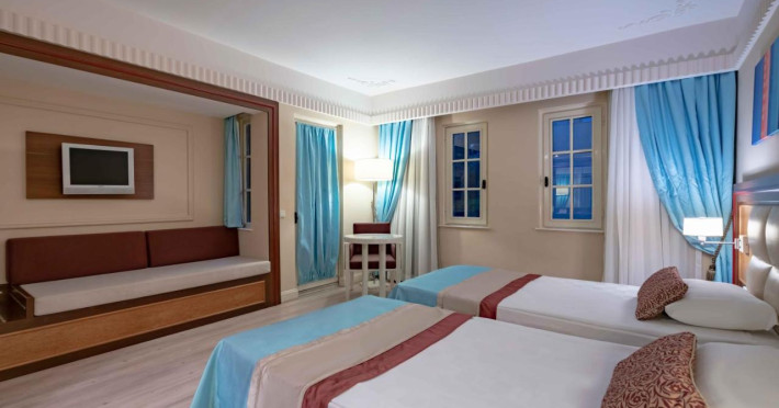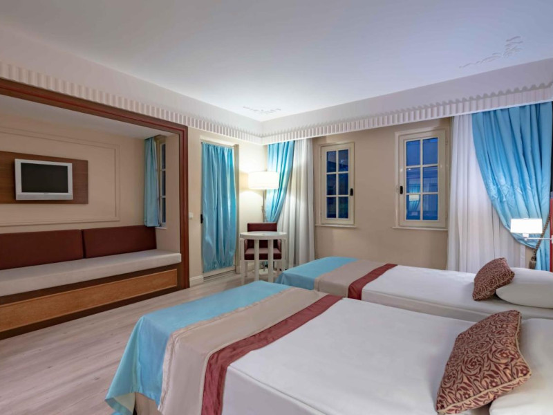 Camere standard (28-30 m²): 1 pat matrimonial sau 2 paturi duble, vedere la grădină. TV LCD 140”, telefon, minibar, AC, podea laminată, baie (duș, WC), șlapi, uscător de păr, seif electronic, radio pe TV.