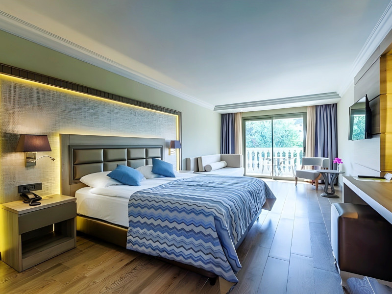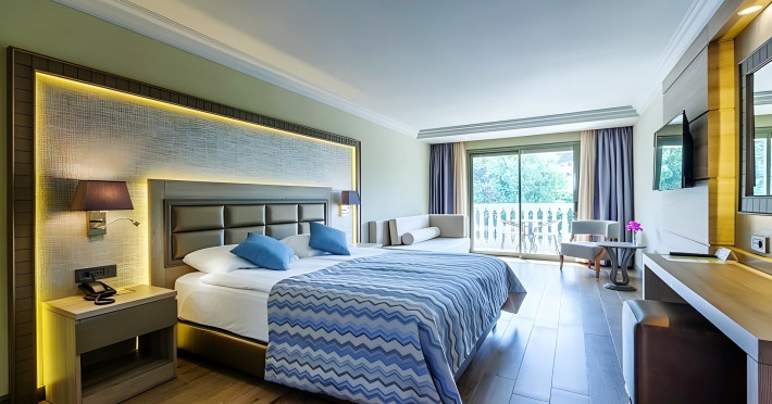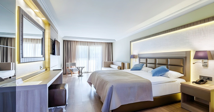 Un hotel elegant de 5 stele in golf, inconjurat de natura locala frumoasa, cu facilitati bogate de sport si relaxare, potrivite pentru toate grupele de varsta. Ultra all inclusive, camere confortabile, animatie excelenta si farmecul naturii inconjuratoare sunt garantia unei vacante grozave pe coasta Rivierei Egee.