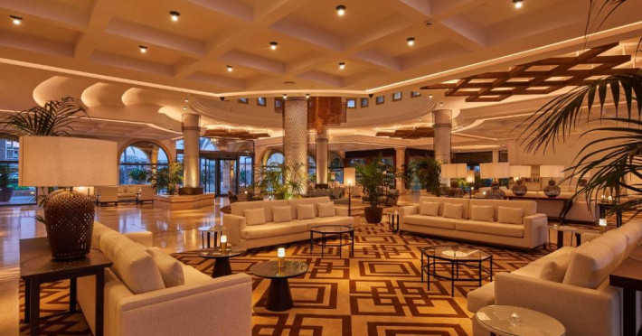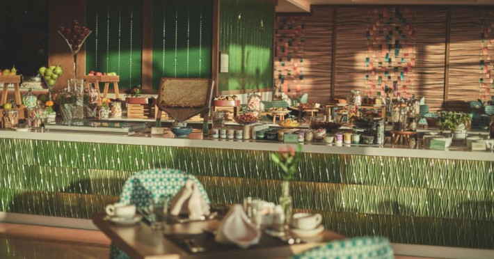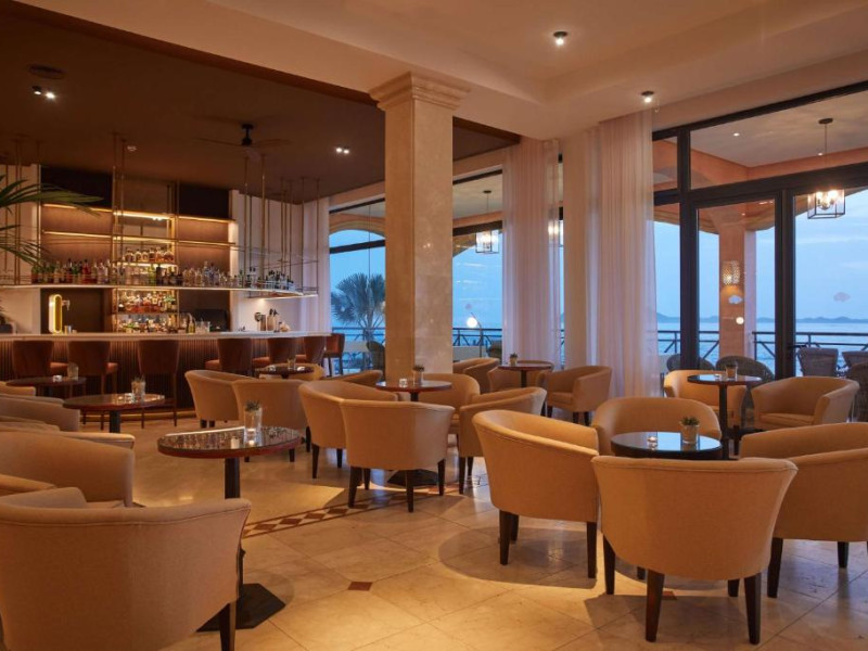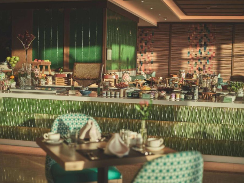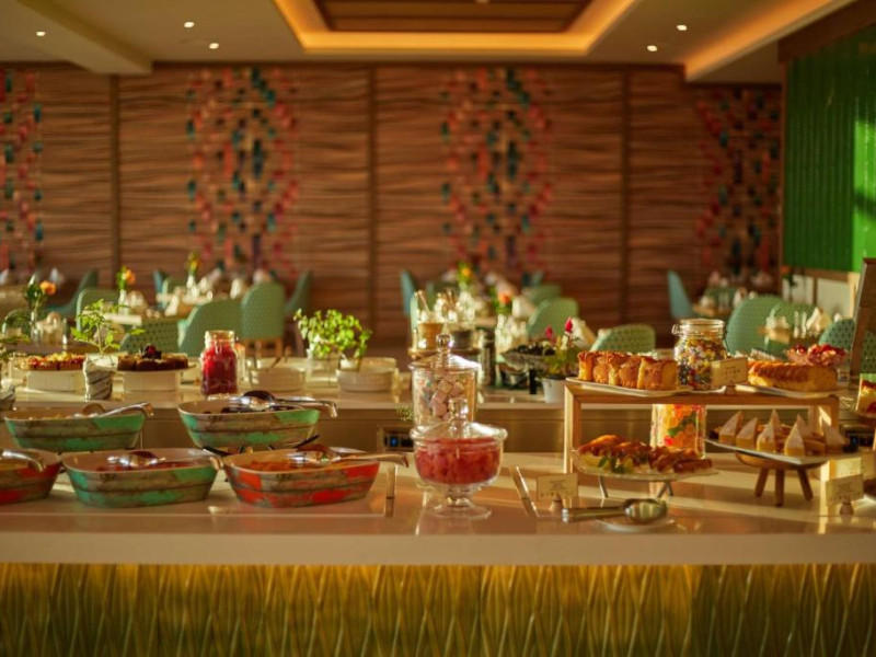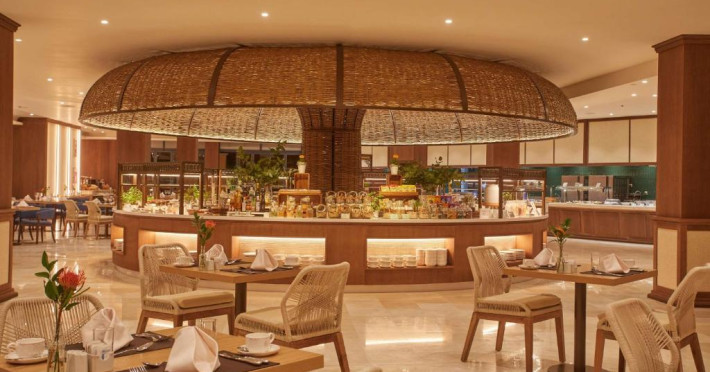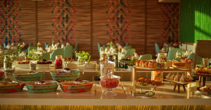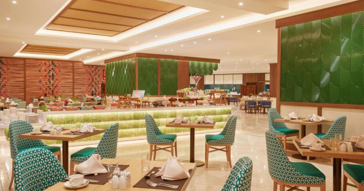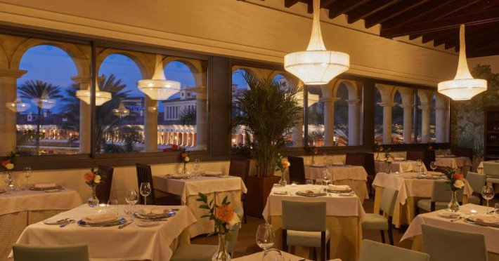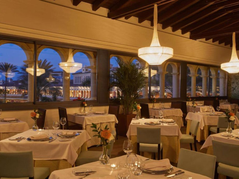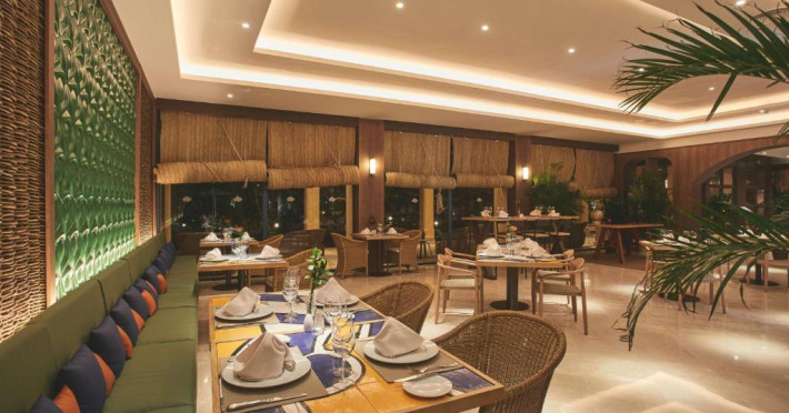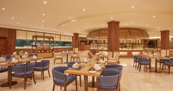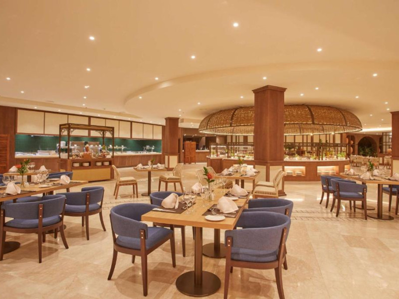 Restaurantele din incintă servesc o gamă largă de preparate internaționale à la carte sau tip bufet. Oaspeții pot lua masa pe terasele restaurantelor cu vedere la mare, printre grădini sau langă piscină, iar in hol există și un bar.