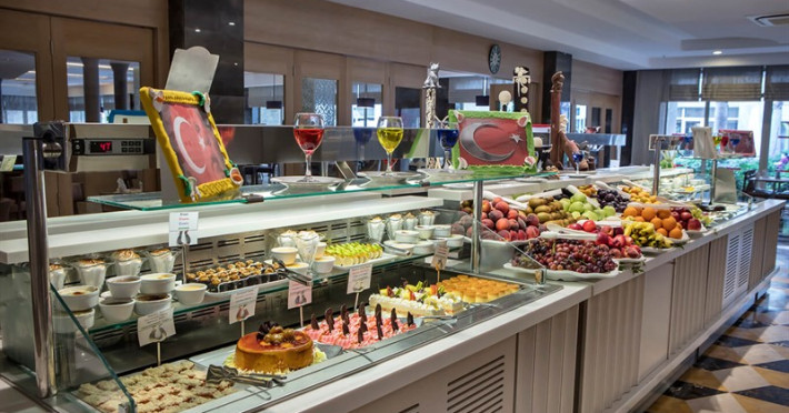 Restaurante A La Carte (cu rezervare): La Mimosa (bucătărie italiană), La Tulipe (bucătărie franceză), La Palapa (bucătărie mexicană), A La Turca (bucătărie turcească), Blue Waters (restaurant de pește).