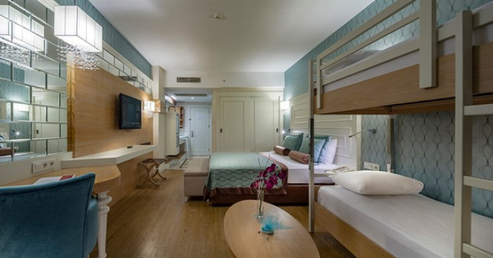 Tipuri de camere: Standard Land View, Standard Side Sea View, Standard Sea View, Cameră pentru persoane cu dizabilități, Suită, Family Land View, Family Side Sea View, Bunkbed Family Room, Economy Room.