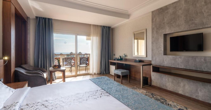 Toate camerele includ terasă sau balcon mare cu vedere la grădină, piscină sau mare. Acestea au mobilier modern din lemn și sunt dotate cu TV prin satelit, aer condiționat și facilități pentru prepararea de ceai și cafea.