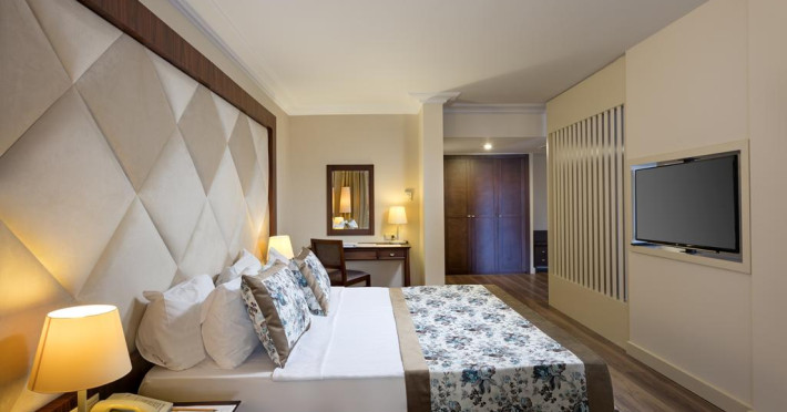 Hotelul pune la dispozitia turistilor 2 restaurante a la carte , internet wifi, servicii de transfer, piscina, centru spa si wellness, 4 baruri, zona de plaja privata, club de copii, loc de joaca pnetru copii, receptie, minibufet, restaunt Kids, camera de cinema, saună, baie turcească, fitness, baie de aburi, terasă, grădină, parcare in limita locurilor disponibile, facilităţi de sporturi nautice, serviciu de concierge, cameră de bagaje, serviciu de vânzare bilete, birou de turism, schimb valutar, rent a car, lift, facilităţi pentru persoane cu mobilitate redusă, zonă de plajă specială pentru copii, servicii medicale, 3 tobogane de apa, 2 sali de conferinte.