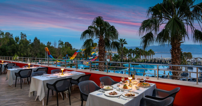 Hotelul SEVEN SEAS SEALIGHT ELITE este situat chiar langa plaja cu nisip, la aproximativ 6 km de orasul Kusadasi si la aproximativ 75 km de aeroportul Izmir. Oportunitatile de cumparaturi sunt la aproximativ 600 m de hotel.
